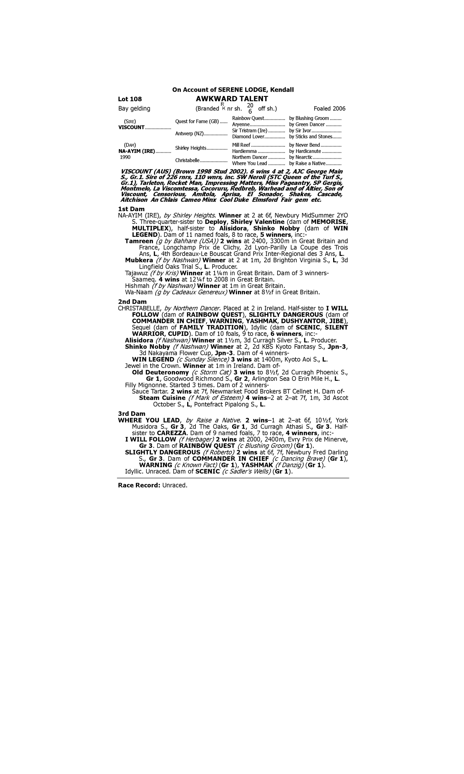 Pedigree for Lot 107 Untouchable - Clear Image (USA)