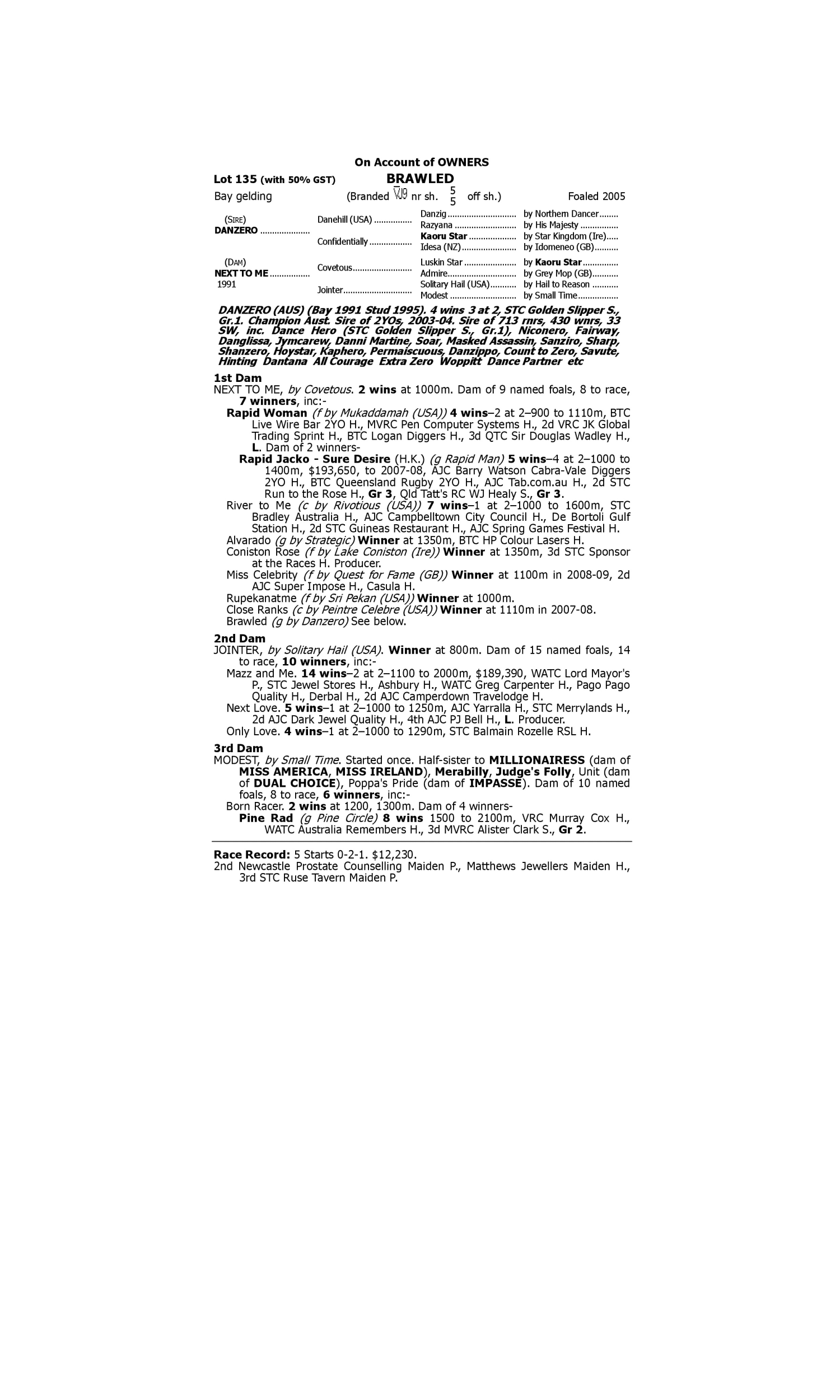 Cosmo Jive (2001.c. by Redoute's Choice-Spinjive, by Cure the Blues-Out on the Town). 1st Kochi DEKOSAN Tokubetsu A3 Run Roxy Run (2004.f. by Rock of Gibraltar-Nuance, by Dehere-Neeran). 1st Bendigo JC Brougham Arms Hotel H. TRUST OR BUST (2005.c. by Trust n Luck-Dance Lead, by Nureyev-Leading the Way). 1st Charles Town Invitational Dash H. L