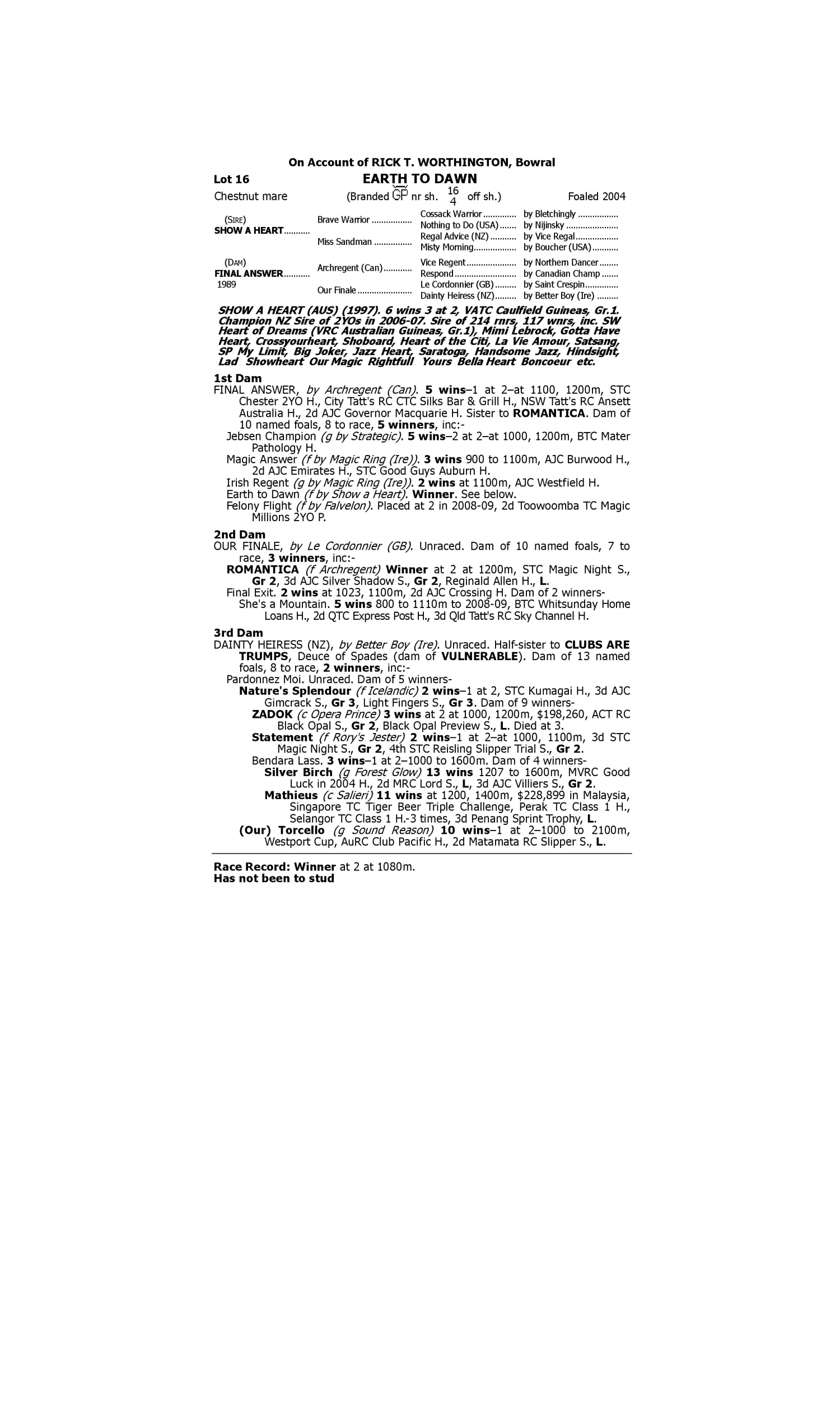 Lot 15 has pedigree updates since the release of the catalogue.