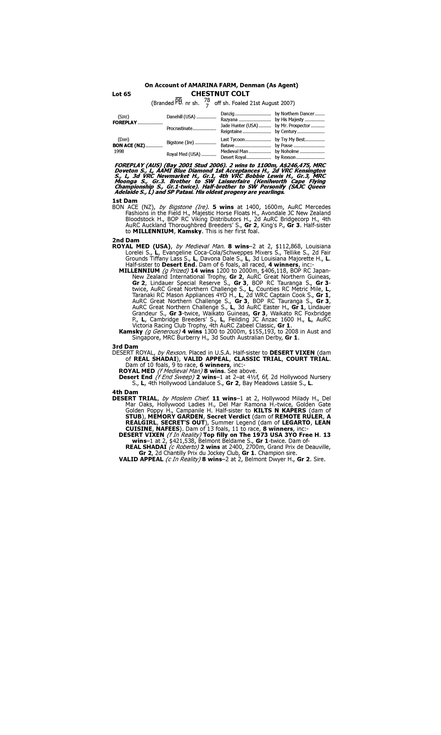 Lot 64 has pedigree updates since the release of the catalogue.