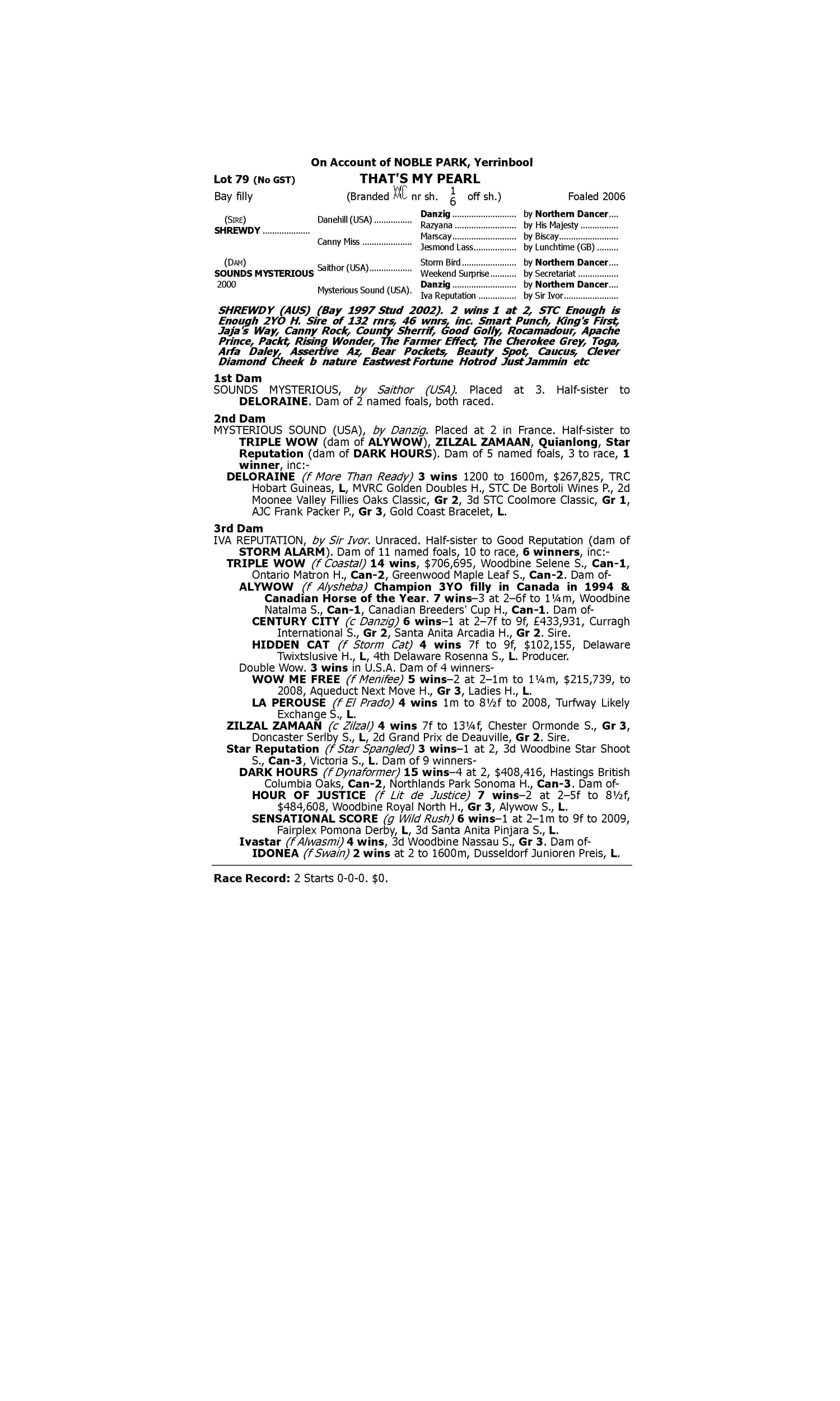 Pedigree for Lot 78 Catbird - Star of Hayley
