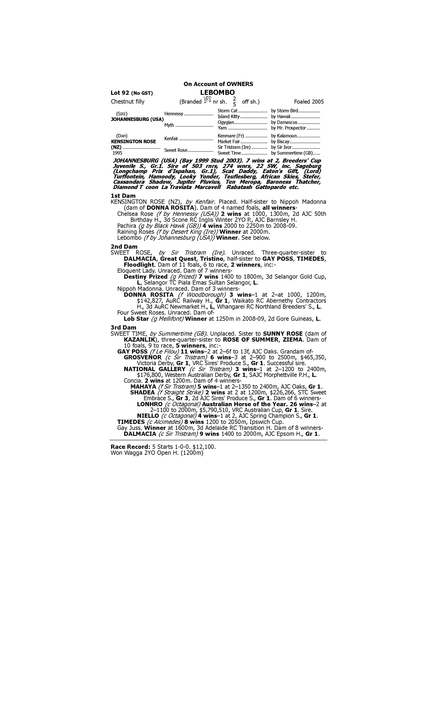 Pedigree for Lot 91 Redoute's Choice - Love to Party