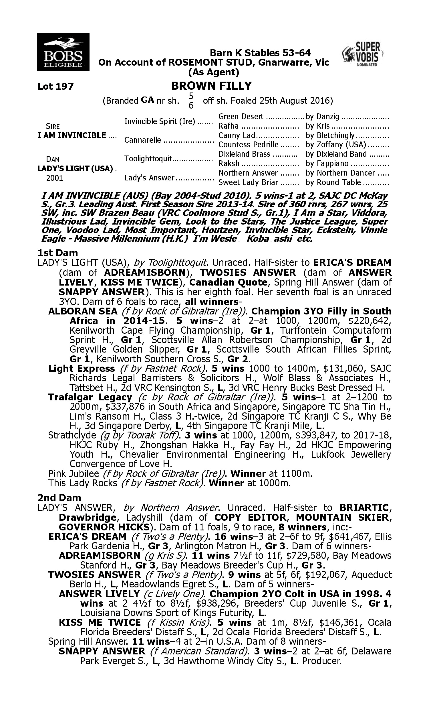 2nd Dam GRUNT (2014.c. by O'Reilly-Ruqqaya, by Van Nistelrooy-Sayyida). 2018-03-03 1st VRC (Flemington) Australian Guineas Gr.1 2018-02-17 1st VRC (Flemington) CS Hayes S. Gr.3 Addison (2013.f. by Jimmy Choux-Ruqqaya, by Van Nistelrooy-Sayyida). 2018-02-17 3rd SAJC (Morphetteville) Birthday Cup L King's Man (2012.g. by Iffraaj-Ruqqaya, by Van Nistelrooy-Sayyida). 2018-03-14 1st HKJC Jaffe H.