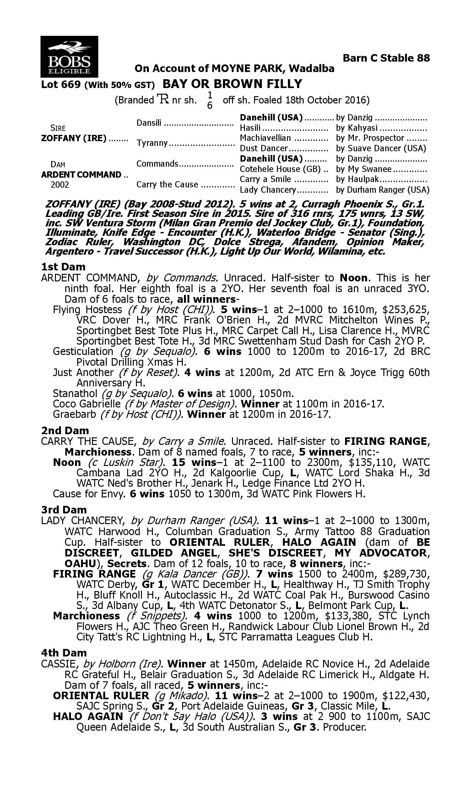 Lot 668 has pedigree updates since the release of the catalogue.