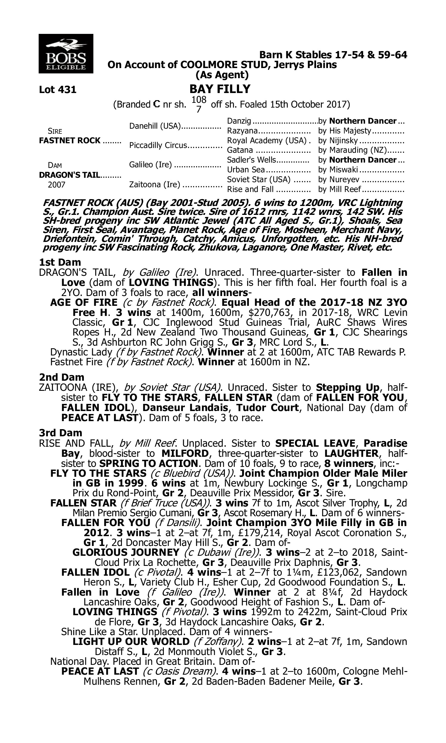 Pedigree for Lot 430 Fastnet Rock - Dower (NZ)