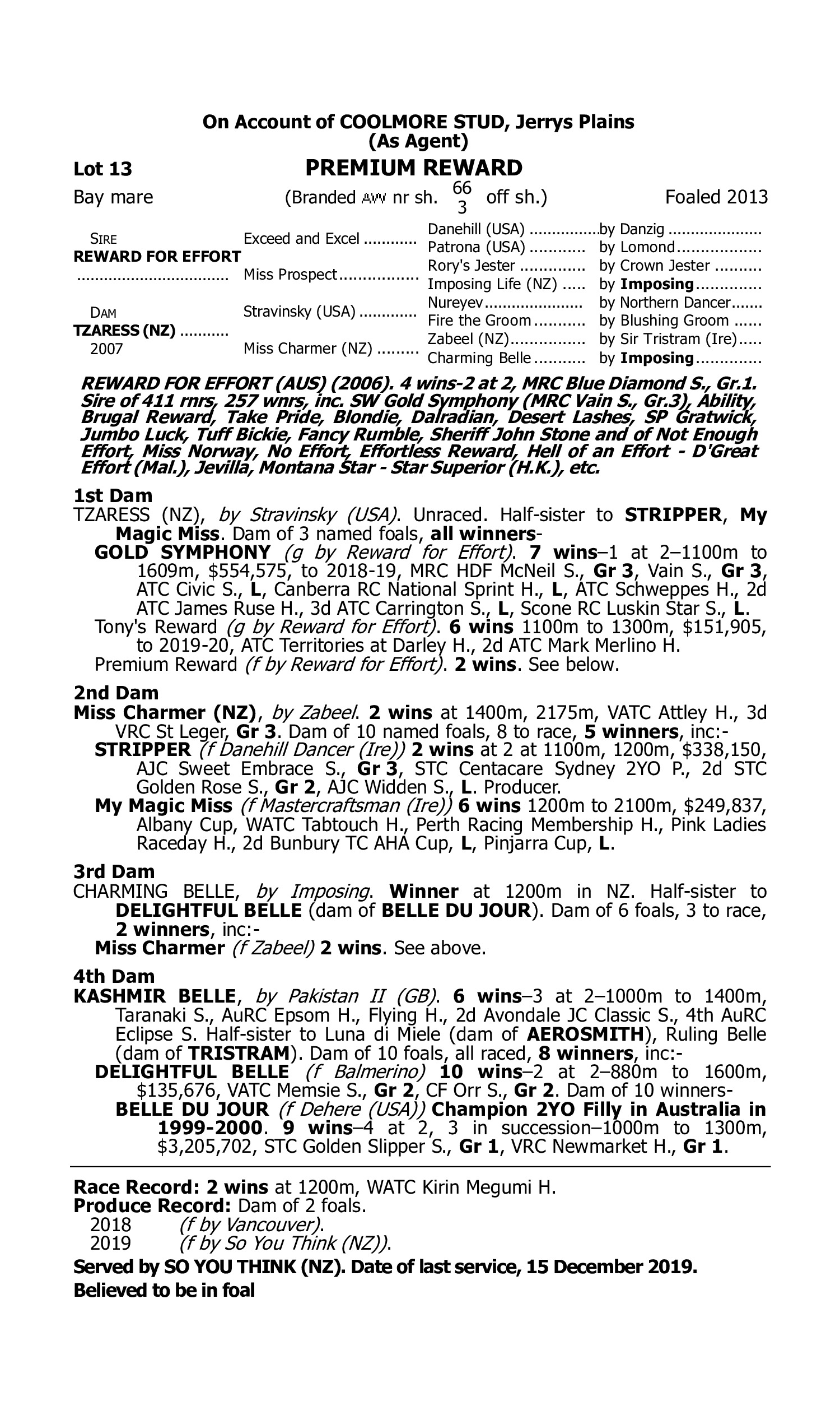 Out of mare Purposeful Miss (2016.f. by Shooting to Win-Premeditated, by Commands-Aforethought). 2020-04-16 1st Goulburn DRC SandK Wilson Plumbing Maiden P. 2nd Dam Money Magic (2016.f. by So You Think-Money Begets Money, by Bite the Bullet-Gainesville). 2020-05-05 1st Hawkebsury Sport and Spine H.