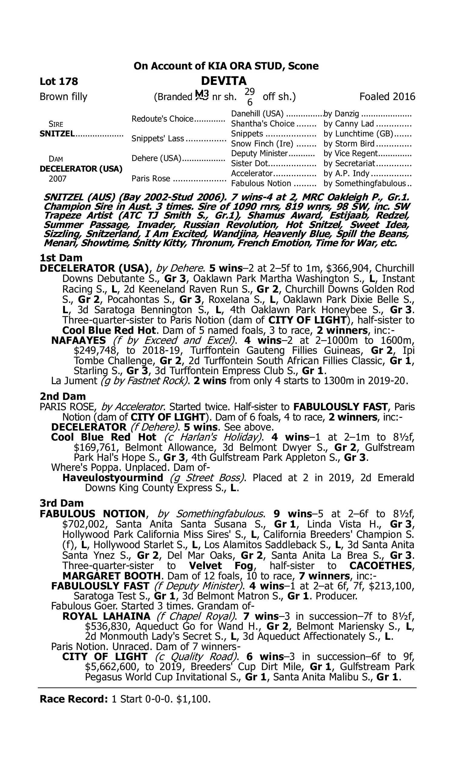 1st Dam Riverina Demand (2016.f. by All American-Hyperinflation, by Rock of Gibraltar-Money Mover). 2020-04-06 1st Queanbeyan RC Mark Hallam Builders Maiden P. 2nd Dam She's Alight (2015.f. by Tavistock-Keep Alight, by Keeper-Our Tristalight). 2020-04-18 1st Perth Racing (Ascot) Crown Perth H. 2020-05-02 1st Perth Racing (Ascot) Northam Mazda CX9 H. Pah Terie - Bright Kid (H.K.) (2014.g. by Show a Heart-Exedra, by Redoute's Choice-Mehitabel). 2020-05-06 1st HKJC Gladiolus H.