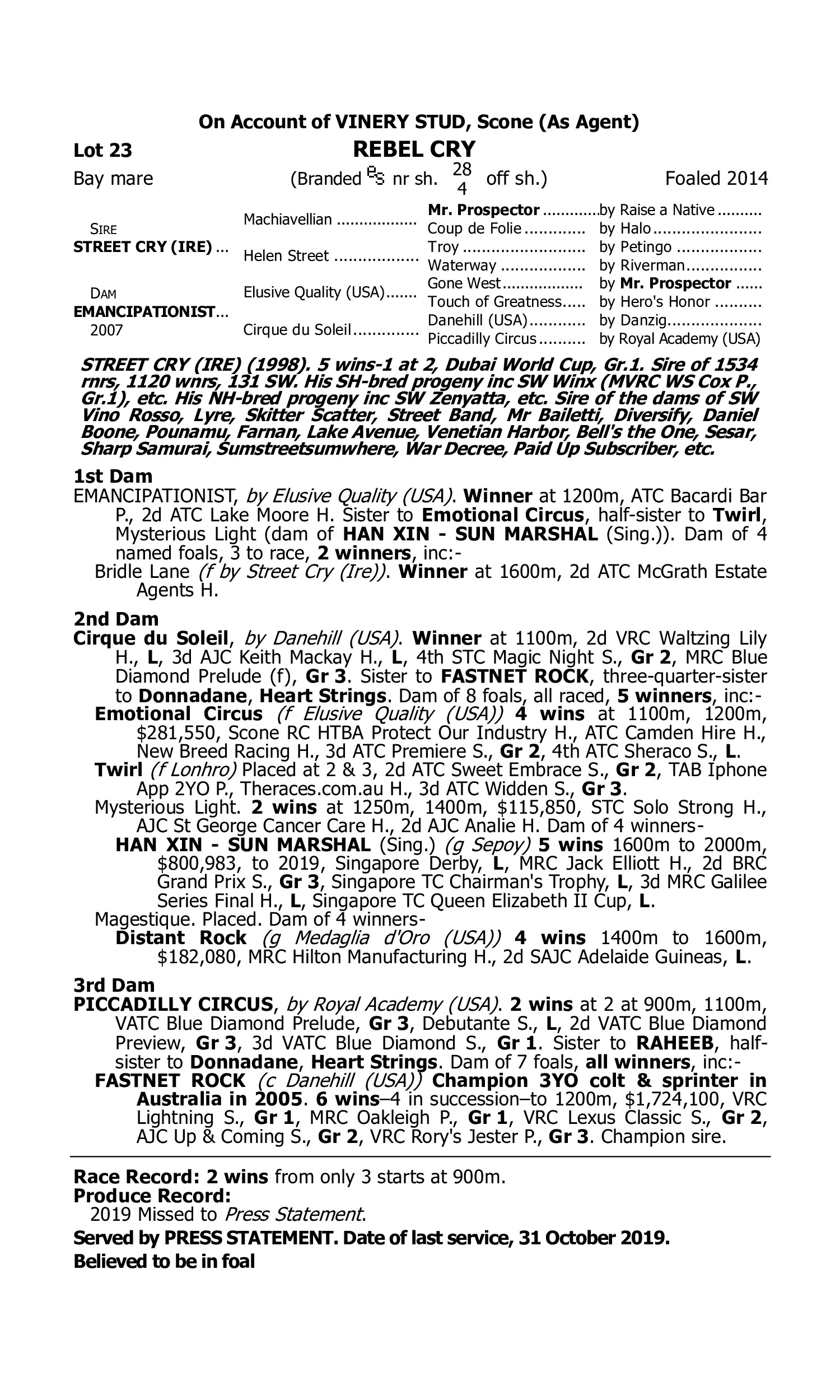 Lot 22 has pedigree updates since the release of the catalogue.