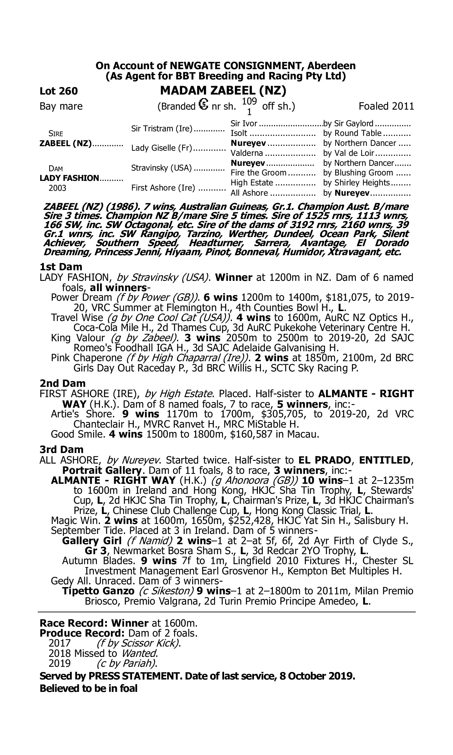 Lot 259 has pedigree updates since the release of the catalogue.