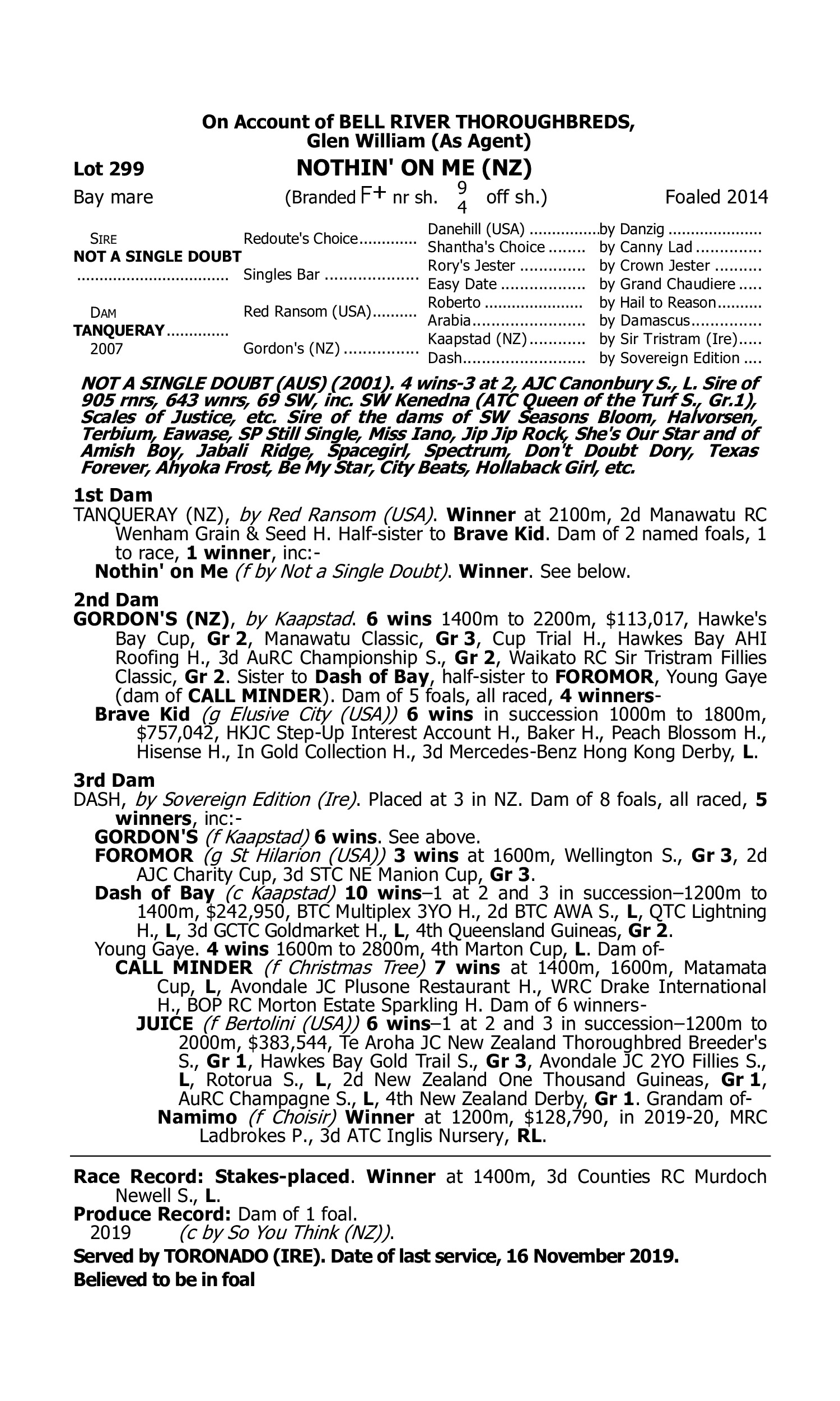 Out of mare More Than Good (2016.f. by More Than Ready-Not Bad, by Danehill Dancer-Looking for Gold). 2020-05-09 1st Moree RC Members Miaden P. 3rd Dam SERIOUS TALK (2012.g. by Forestry-Agapanthus, by Theatrical-Hattiesburg). 2020-04-21 1st Will Rogers Downs Claiming