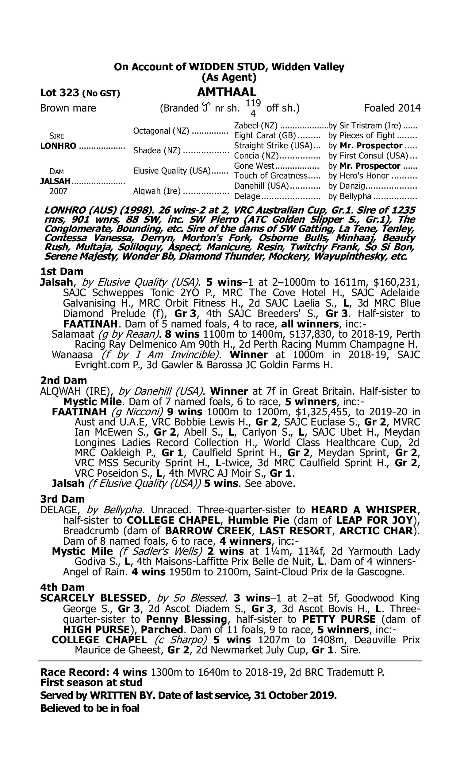 Pedigree for Lot 322 Deep Field - Zarinia (IRE)