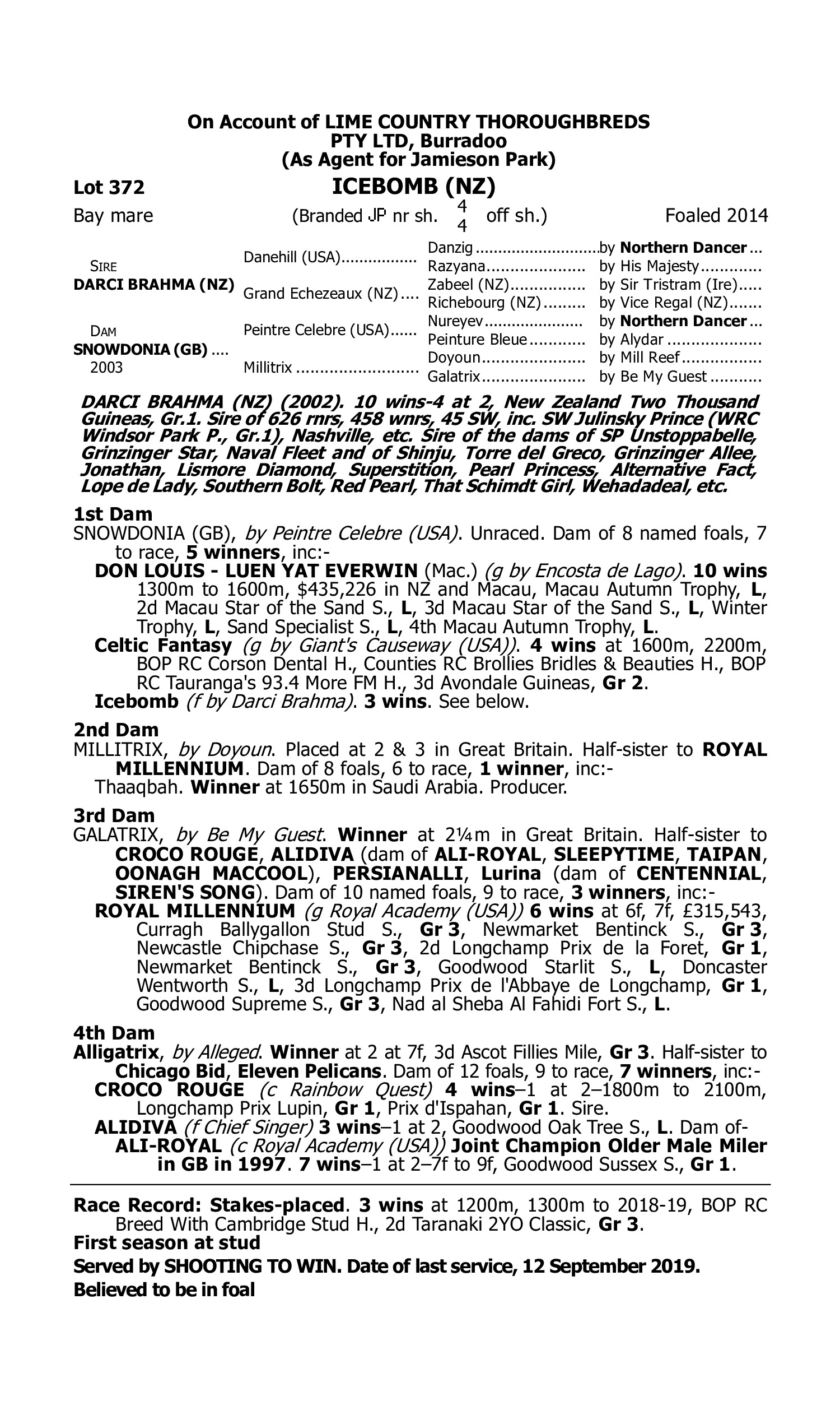 Lot 371 has pedigree updates since the release of the catalogue.