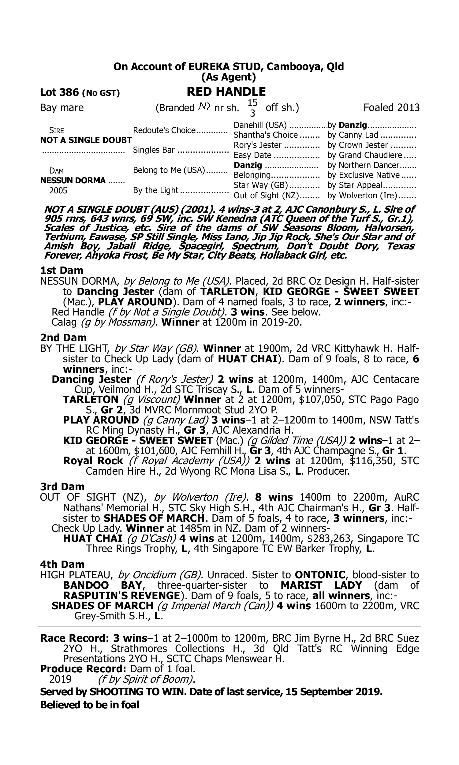 Lot 385 has pedigree updates since the release of the catalogue.
