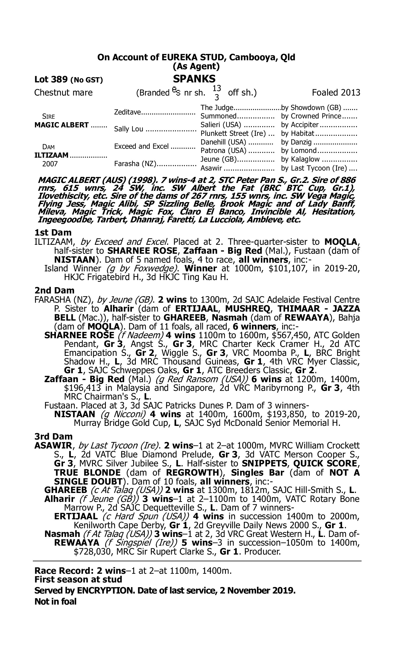 Lot 388 has pedigree updates since the release of the catalogue.