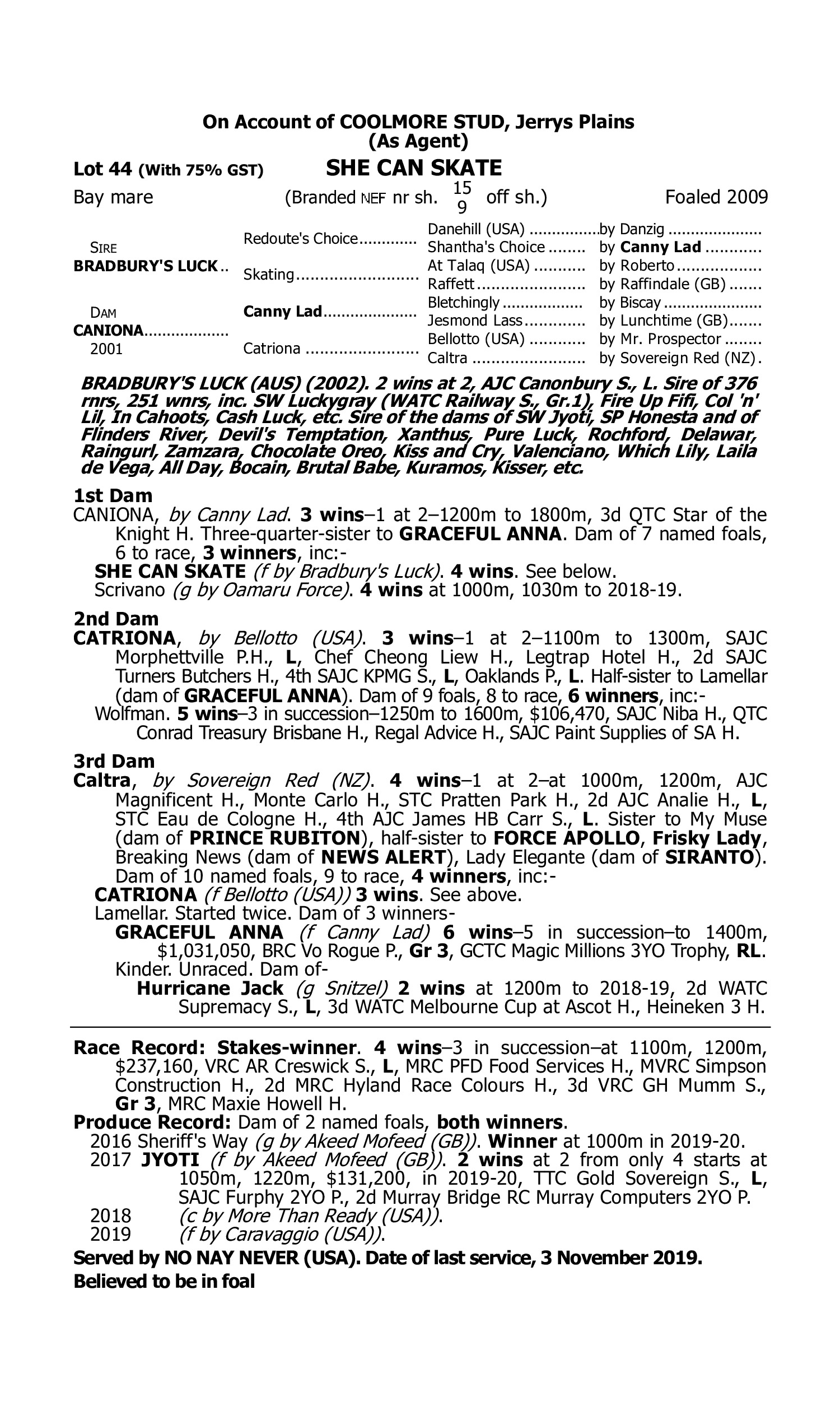 1st Dam Endless River (2016.g. by Showcasing-Victim of Love, by Pentire-It's My Sin). 2020-04-03 1st GCTC (GCTC) Dr Glen McCabe Memorial Maiden P. Wandering Eye - Ballistic King (H.K.) (2014.g. by Commands-Adulterer, by Traditionally-It's My Sin). 2020-04-12 1st HKJC Austin H.