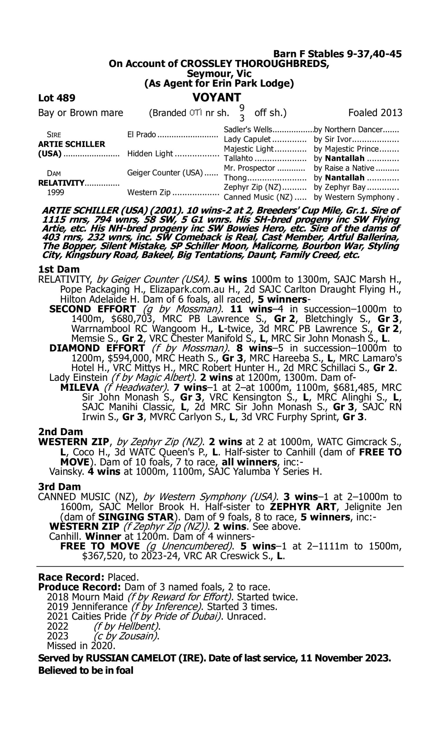 1st Dam MAZU (2018.g. by Maurice-Chatelaine, by Flying Spur-Midnight Renegade). 2024-06-08 2nd BRC (Eagle Farm) Moreton Cup Gr.2 Galactic Legend (2019.g. by Deep Field-Whitula, by Onemorenomore-Chatelaine). 2024-05-26 1st SCTC (Sunshine Coast) Cotton Tree Steaks H.