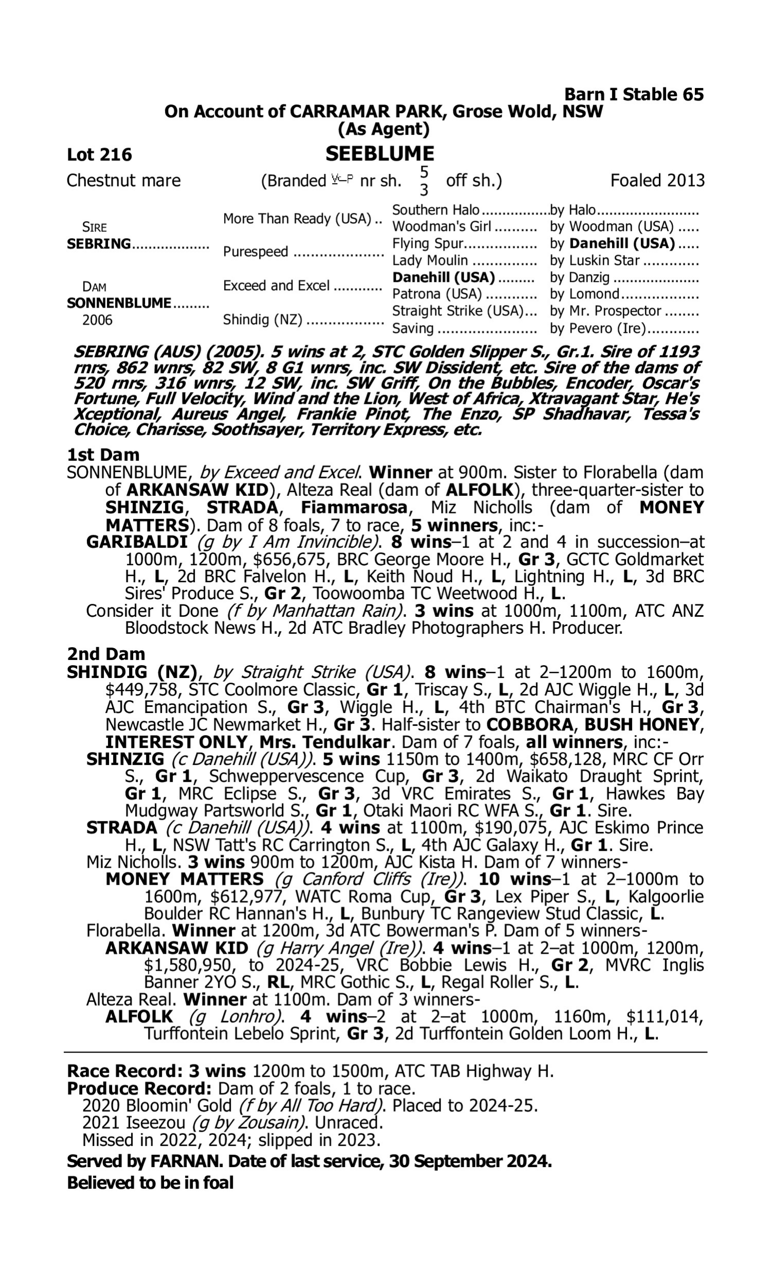 Pedigree for Lot 215 Sacred Falls (NZ) - Suitely