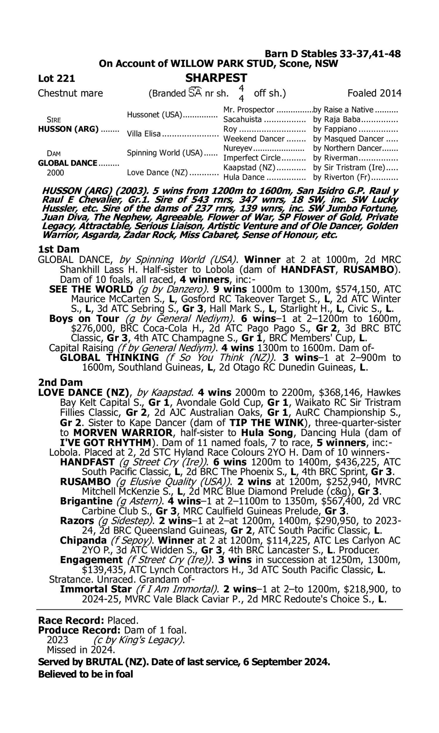 Pedigree for Lot 220 Maurice (JPN) - Flashing Speed