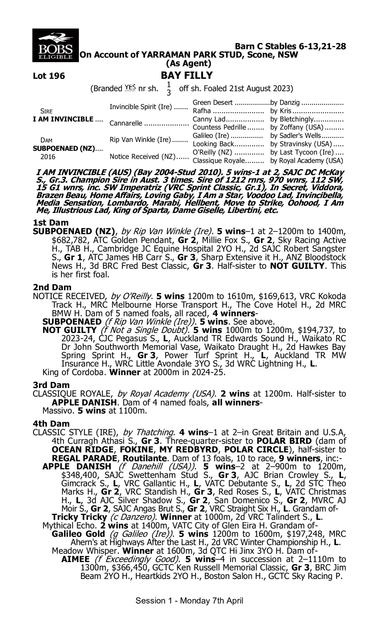 3rd Dam ROYAL CHAMPION (2018.g. by Shamardal-Emirates Queen, by Street Cry-Zomaradah). 2025-02-22 1st Southwell Winter Derby S. Gr.3 2025-04-25 4th Sandown Gordon Richards S. Gr.3 ROYAL RHYME (2020.c. by Lope de Vega-Dubai Queen, by Kingmambo-Zomaradah). 2025-04-27 3rd ParisLongchamp Prix Ganay Gr.1