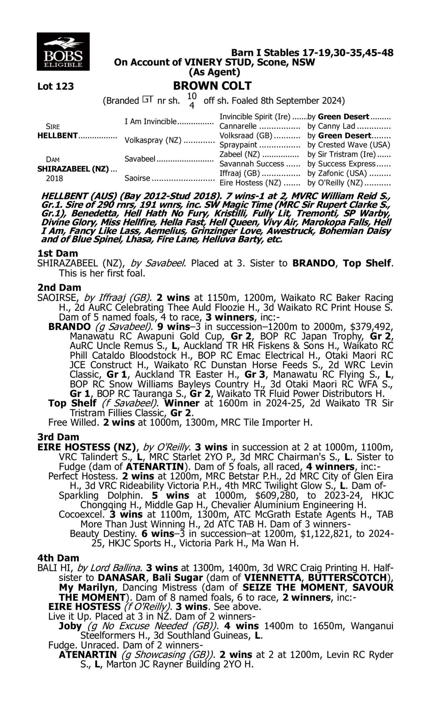 Pedigree for Lot 122 Too Darn Hot (GB) - Sheza Flyer (NZ)