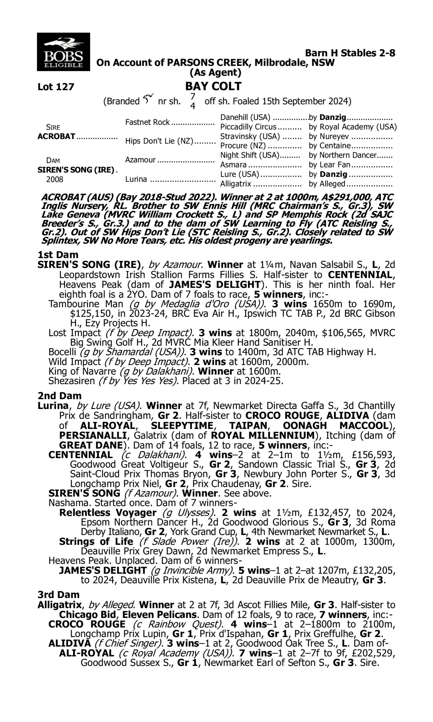 Pedigree for Lot 126 Hitotsu - Sidewalk Sinner