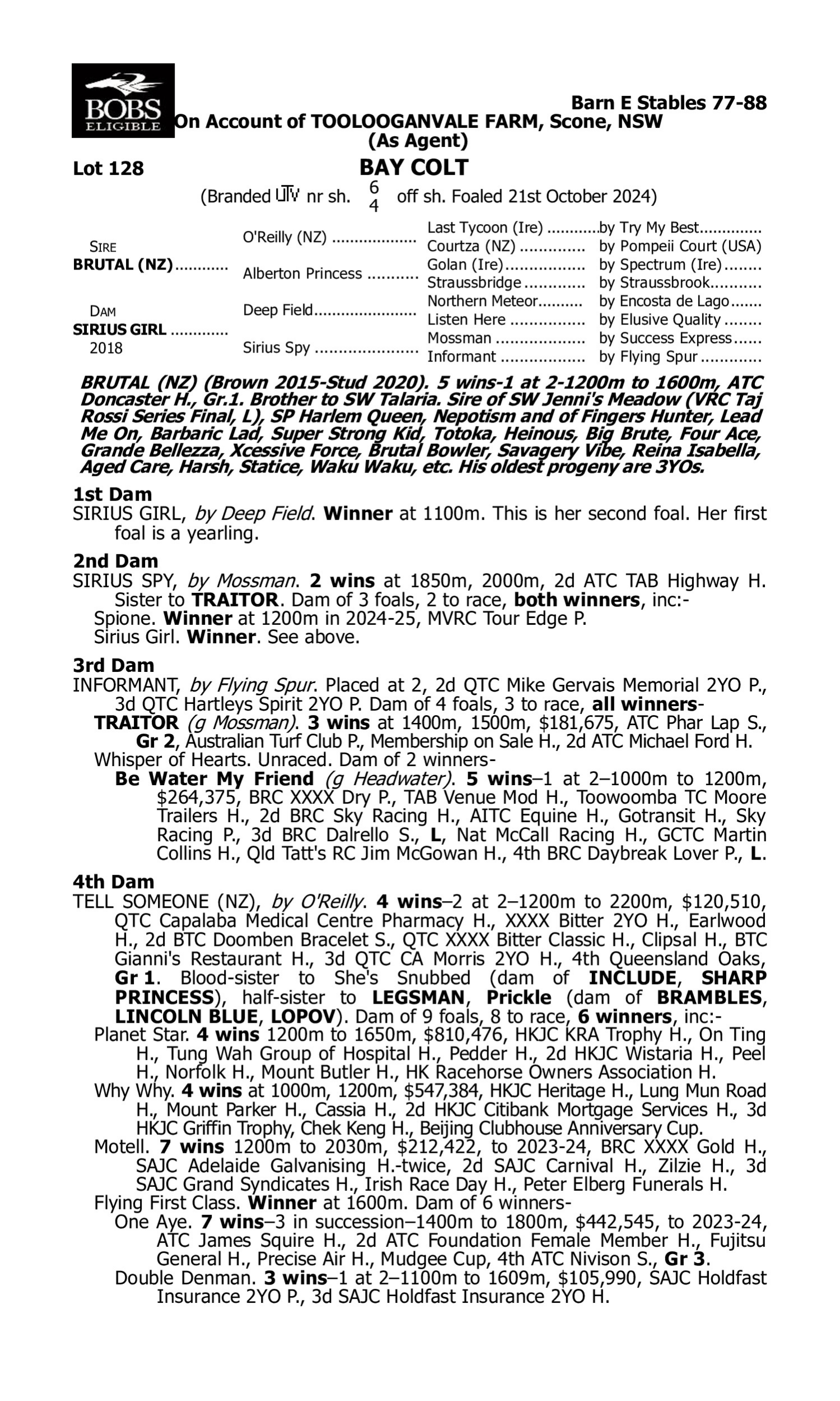 2nd Dam JAMES'S DELIGHT (2021.g. by Invincible Army-Heavens Peak, by Pivotal-Lurina). 2025-05-24 1st Curragh Greenlands S. Gr.2 3rd Dam Jones (2022.f. by Elarqam-Sans Peur, by Halling-Blue Lullaby). 2025-03-29 2nd Saint-Cloud Prix Penelope Gr.3 2025-05-11 4th ParisLongchamp Prix Saint-Alary Gr.2 LAZZAT (2021.g. by Territories-Lastochka, by Australia-Lashyn). 2025-05-02 1st Chantilly Prix Servanne L
