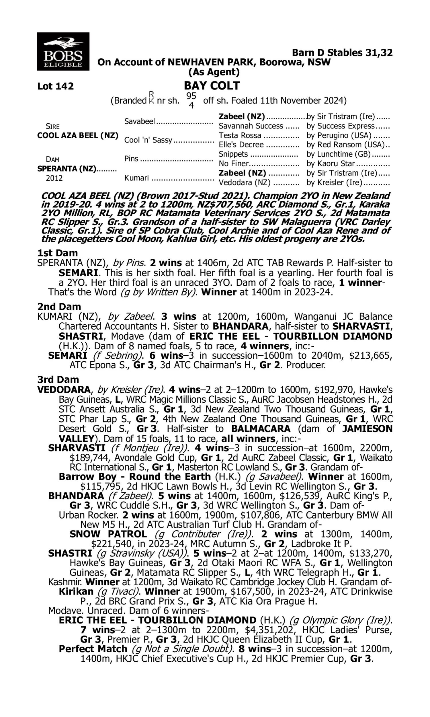 Lot 141 has pedigree updates since the release of the catalogue.