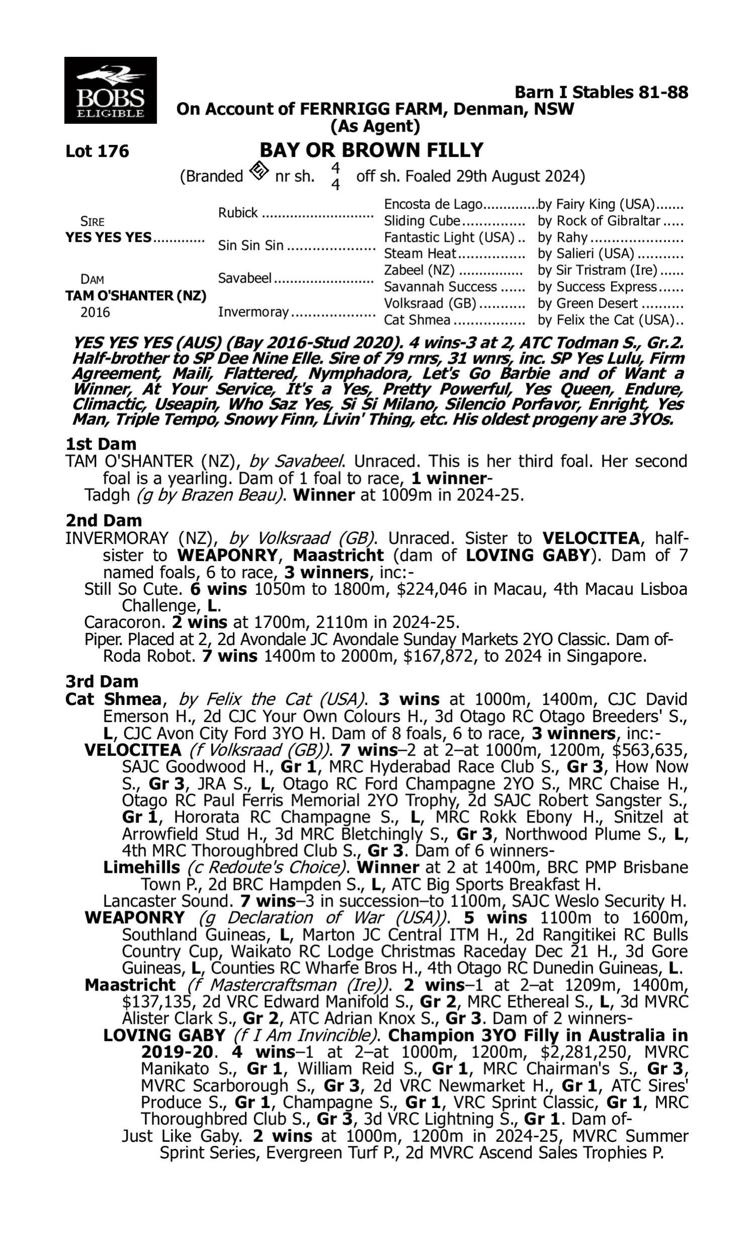 Lot 175 has pedigree updates since the release of the catalogue.