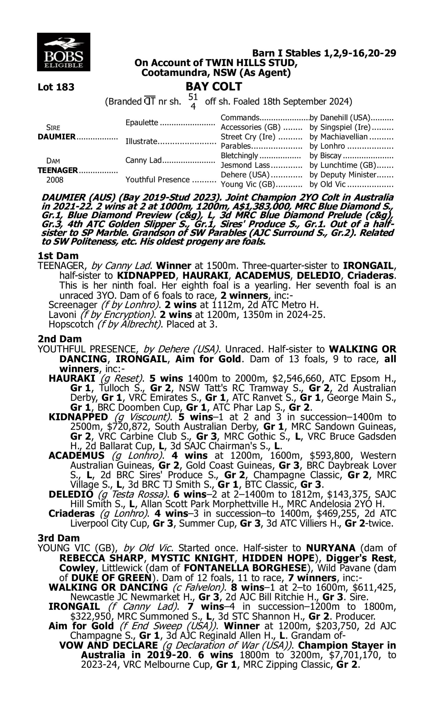 Pedigree for Lot 182 Toronado (IRE) - Tayla's Moment