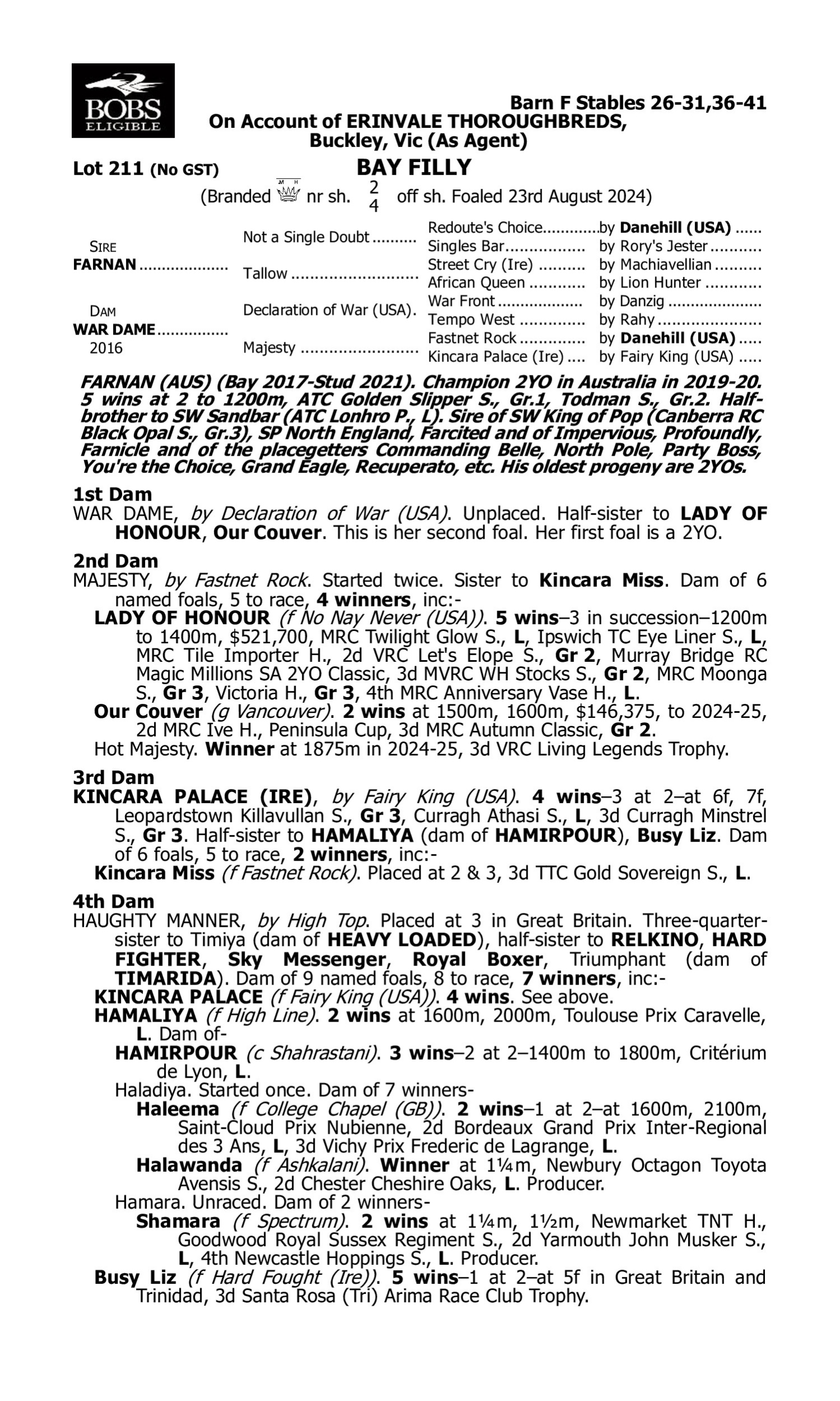 Pedigree for Lot 210 Jacquinot - Waltz