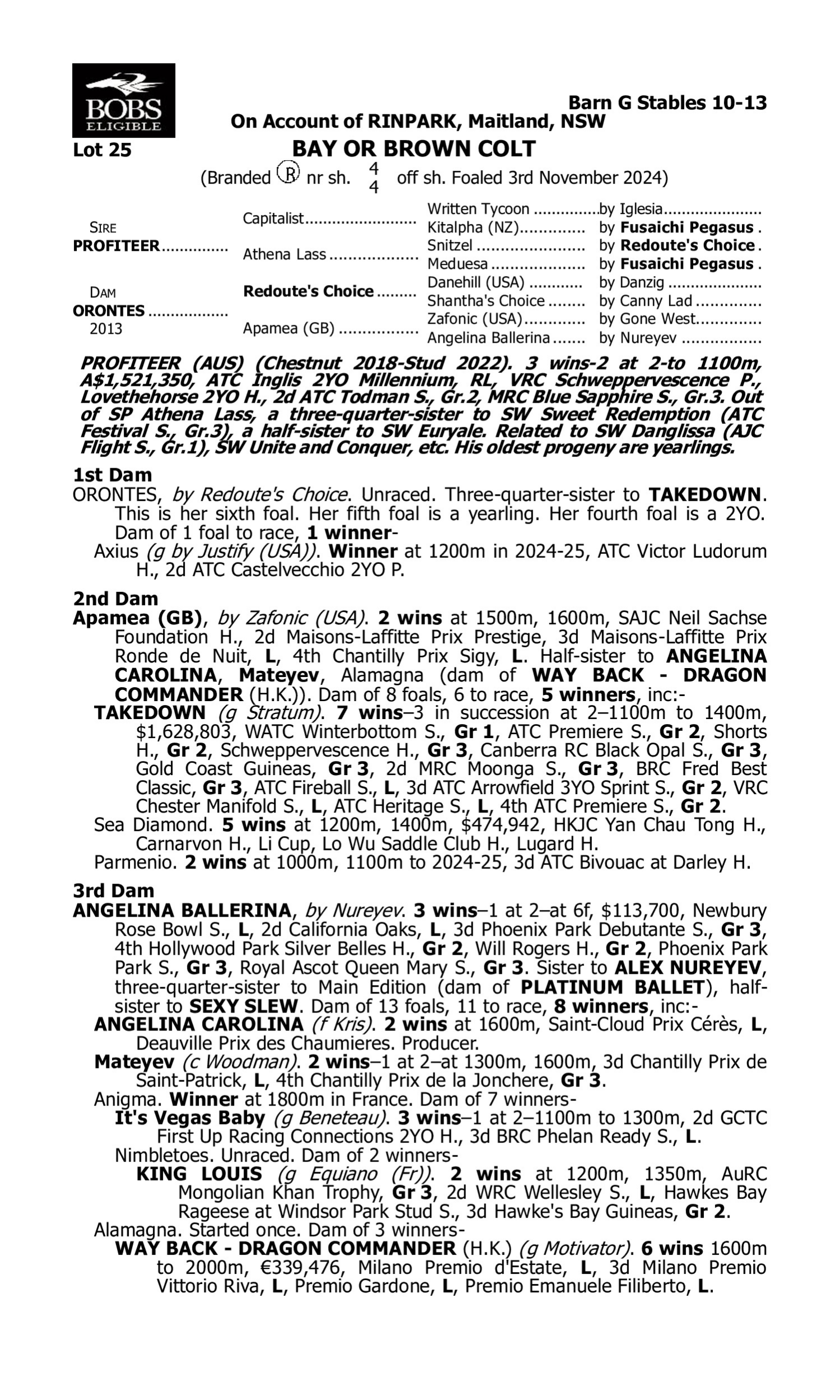 2nd Dam COOL ARCHIE (2022.c. by Cool Aza Beel-Aware, by Tale of the Cat-Media). 2025-05-17 1st BRC (Doomben) Spirit of Boom Classic Gr.2 2025-05-31 1st BRC (Eagle Farm) Sires' Produce S. Gr.2 2025-05-03 1st BRC (Eagle Farm) Dalrello S. L 2025-04-16 1st BRC (Doomben) Sky Racing Maiden 2YO P. North Pole (2022.g. by Farnan-Global Dream, by Fastnet Rock-Valadon). 2025-04-30 1st Ipswich TC (Ipswich) Great Northern Maiden 2YO P.