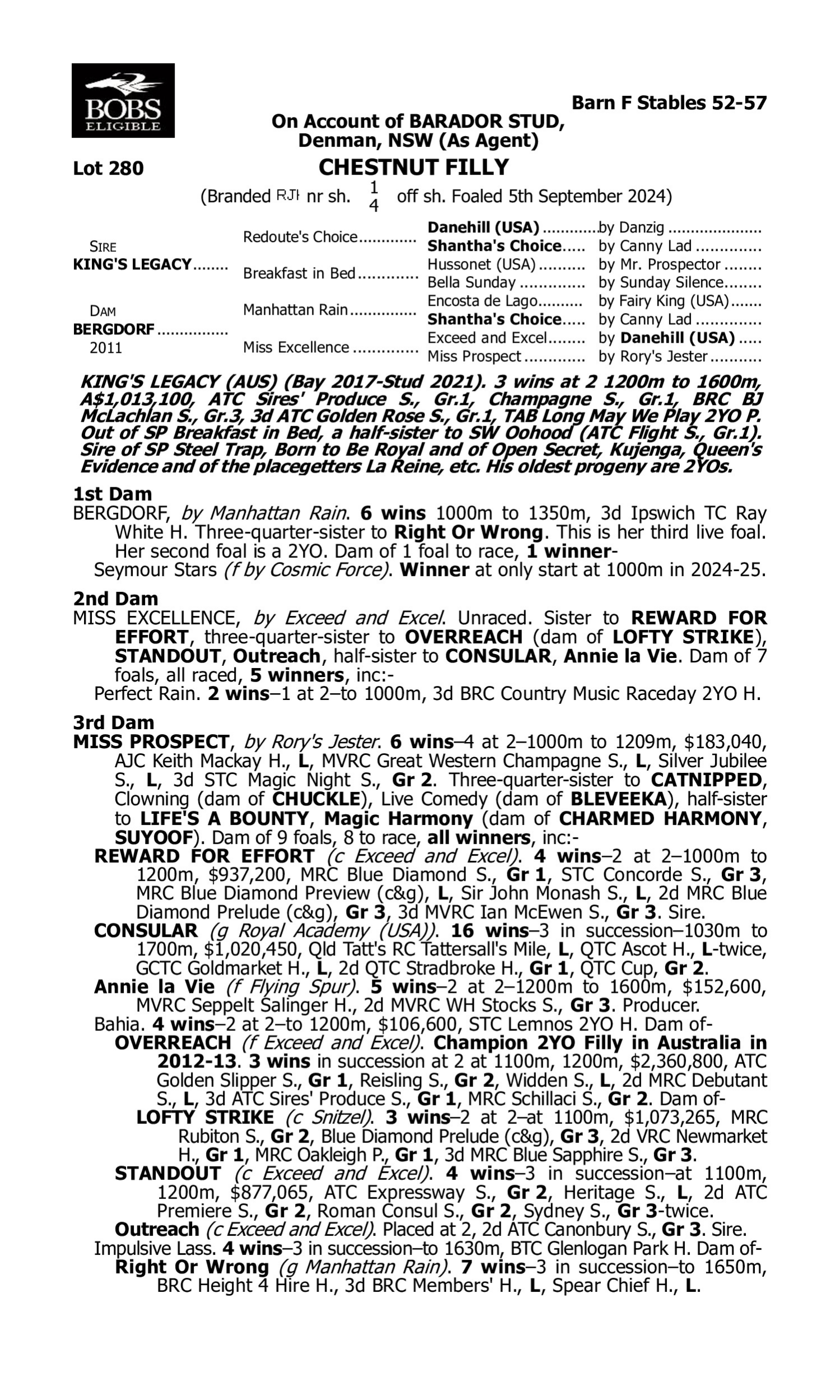 Pedigree for Lot 279 Pierata - Belle Espoir