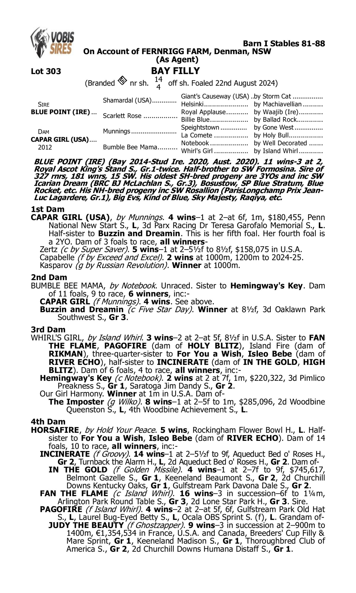Pedigree for Lot 302 Stay Inside - Cap Estel