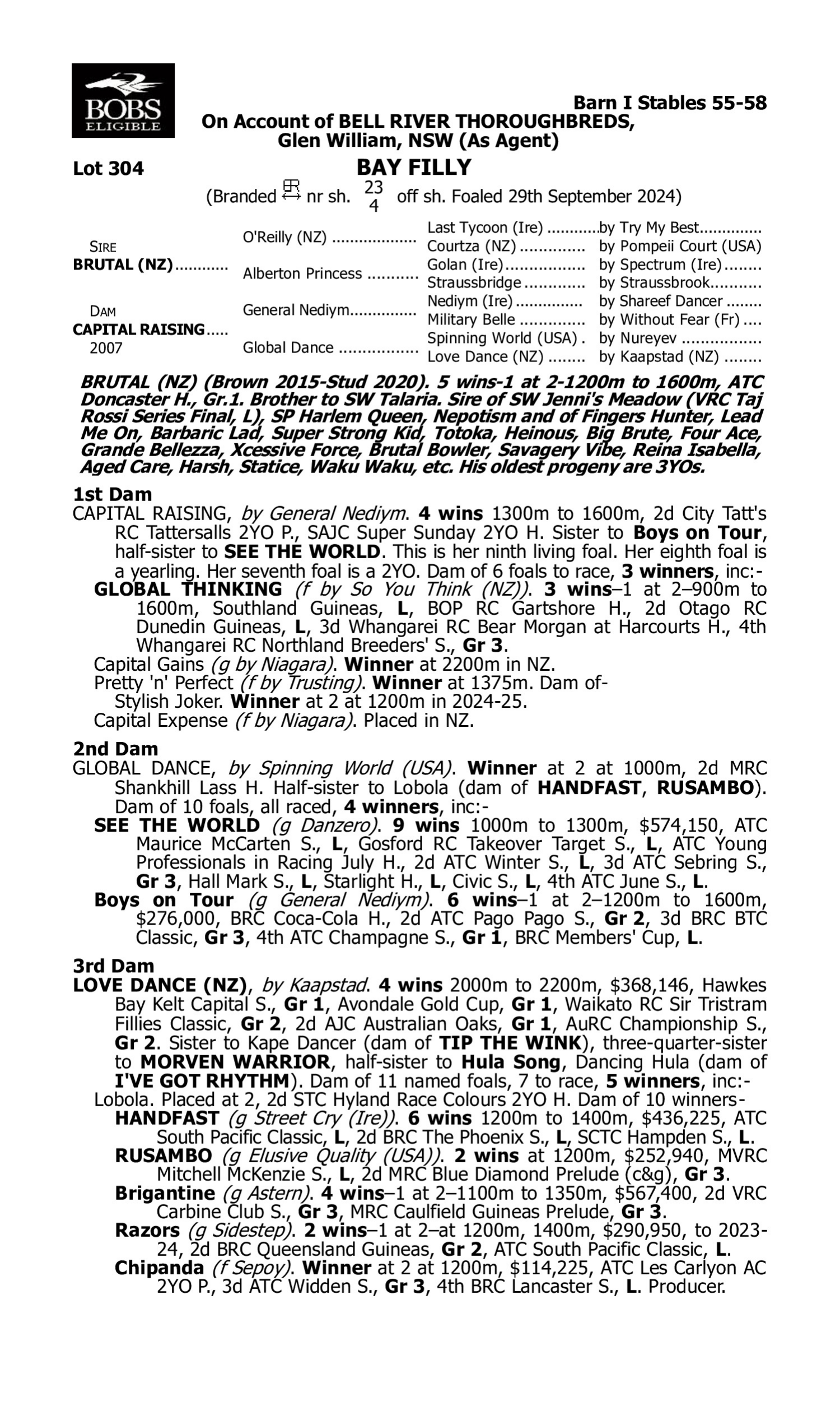 1st Dam Capabelle (2020.f. by Exceed and Excel-Capar Girl, by Munnings-Bumble Bee Mama). 2025-04-11 2nd TTC Tasracing H. 2025-04-04 3rd TTC Good Friday Racing H.