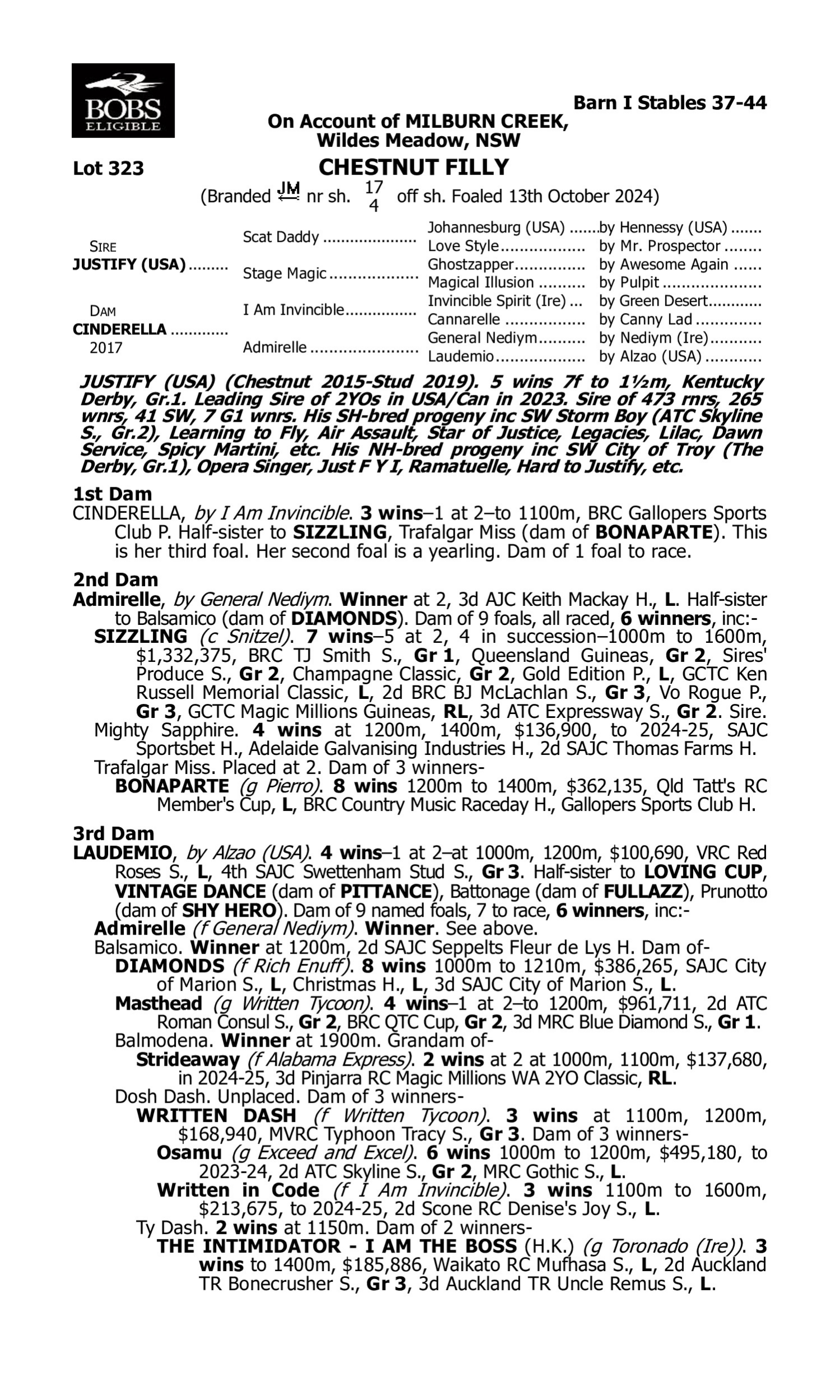 Lot 322 has pedigree updates since the release of the catalogue.