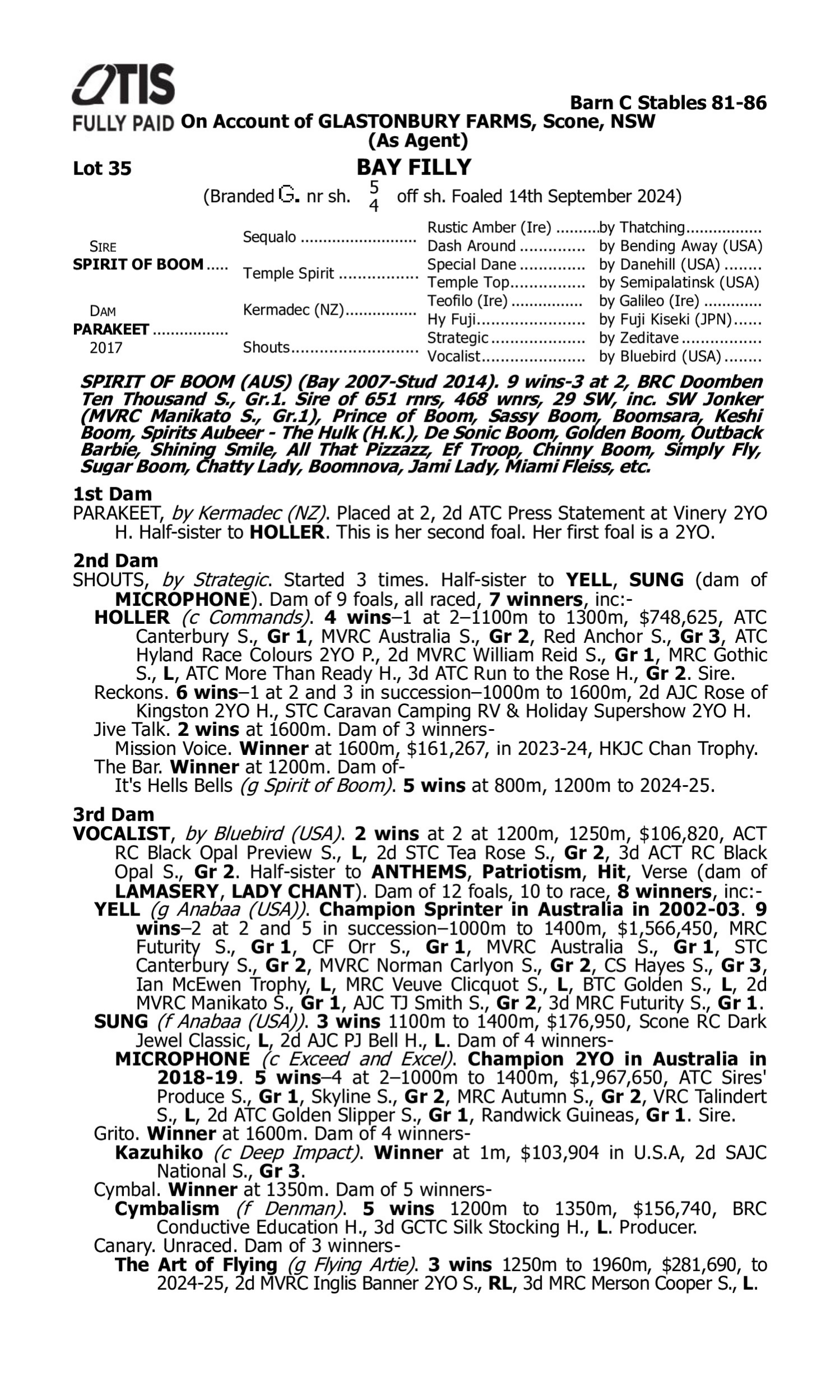 2nd Dam (Perfect) Pairing (2019.g. by Pierro-Aonair, by Fastnet Rock-Perfect Persuasion). 2025-05-07 1st HKJC French May Trophy 3rd Dam Madame Magic (2019.f. by Real Impact-Defender, by Redoute's Choice-Alinghi). 2025-05-03 1st WATC (Ascot) Morley Growers Market H. 2025-06-02 1st Northam RC Western Australian Day Cup SPICY MARTINI (2021.f. by Justify-Extra Olives, by Redoute's Choice-Line Honours). 2025-06-04 1st BRC (Doomben) Fred Best Classic Gr.3 2025-04-26 1st BRC (Eagle Farm) Mick Dittman P. L