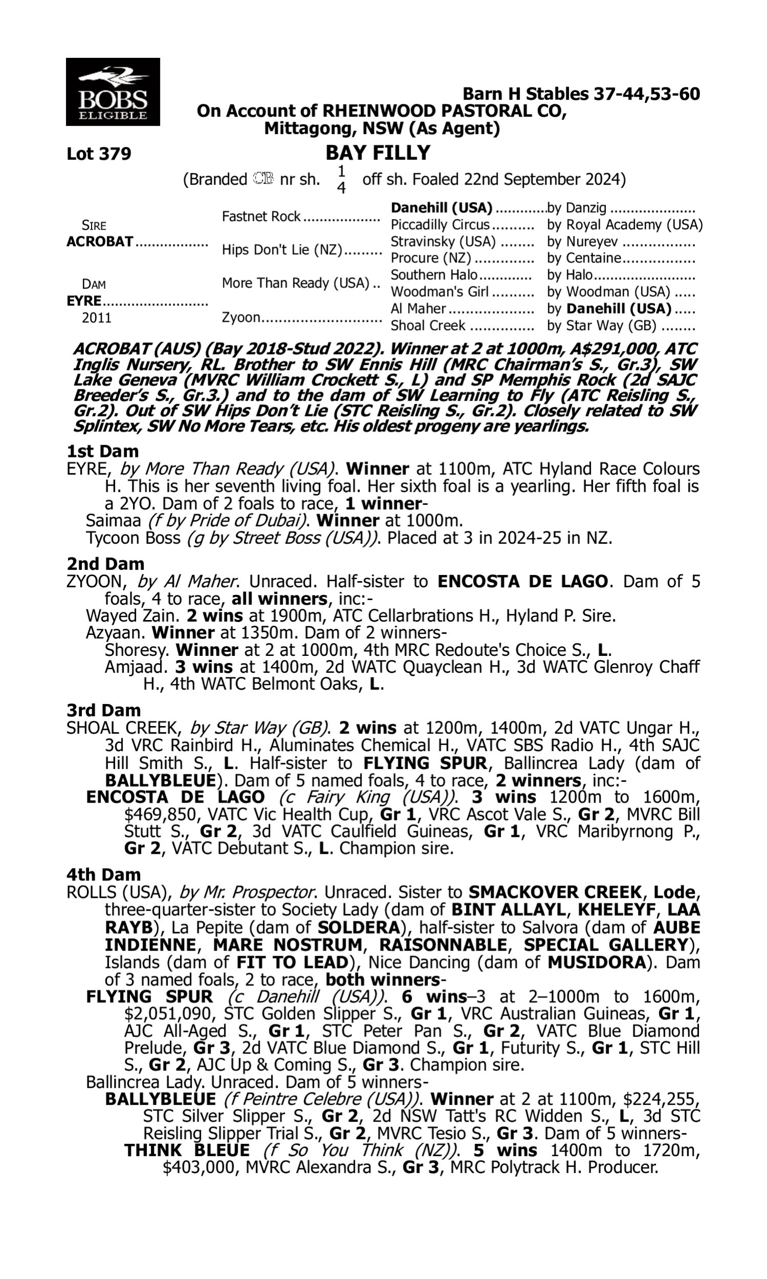 Lot 378 has pedigree updates since the release of the catalogue.