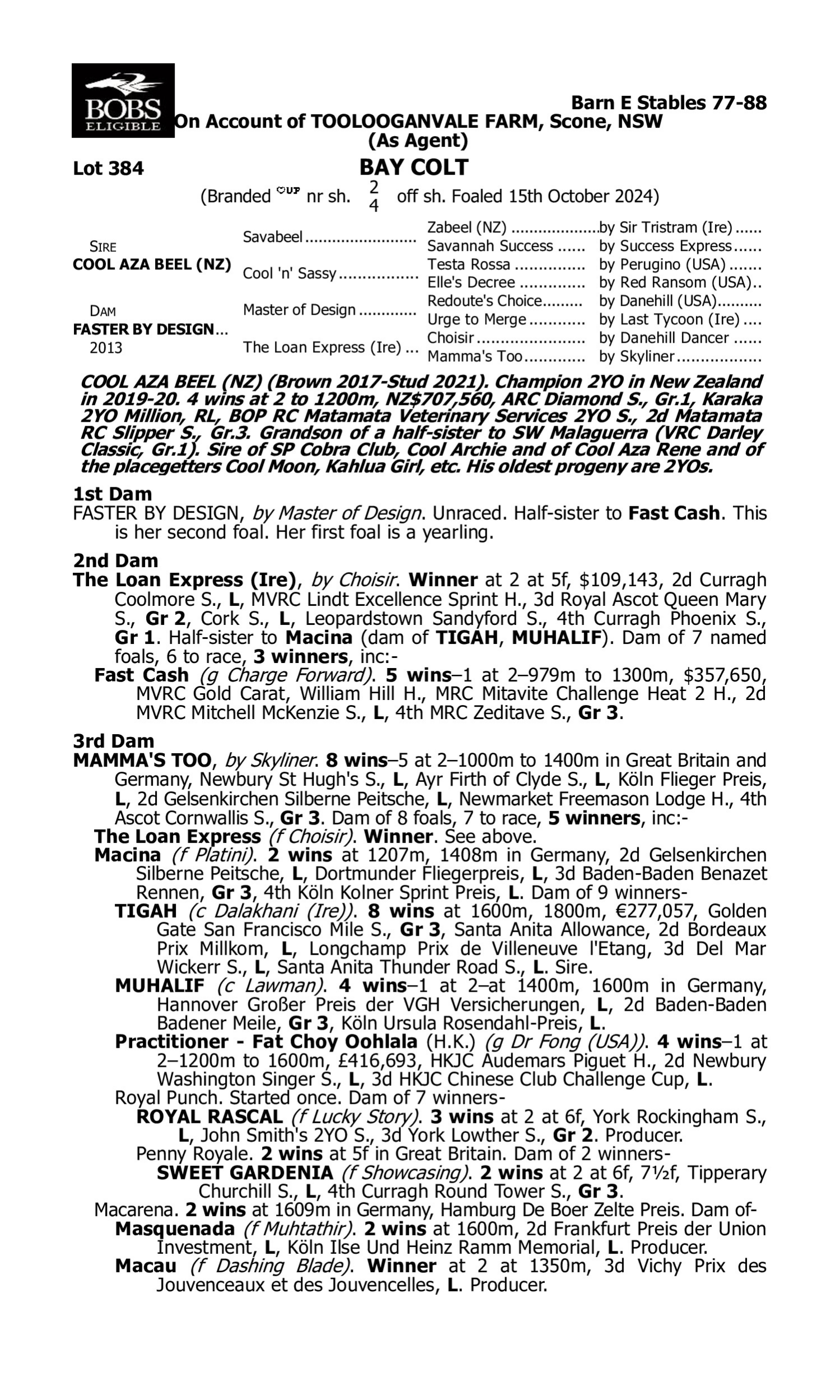 2nd Dam One Command (2020.g. by I Am Invincible-Fast Fleet, by Fastnet Rock-Fleet Marguerite). 2025-04-12 1st Grenfell PRC Class B H. Santa Ana Moon (2021.g. by Puissance de Lune-Santa Ana Way, by Toorak Toff-Fast Fleet). 2025-04-09 1st MRC (Sandown) Sportsbet Jockey Watch Maiden P.