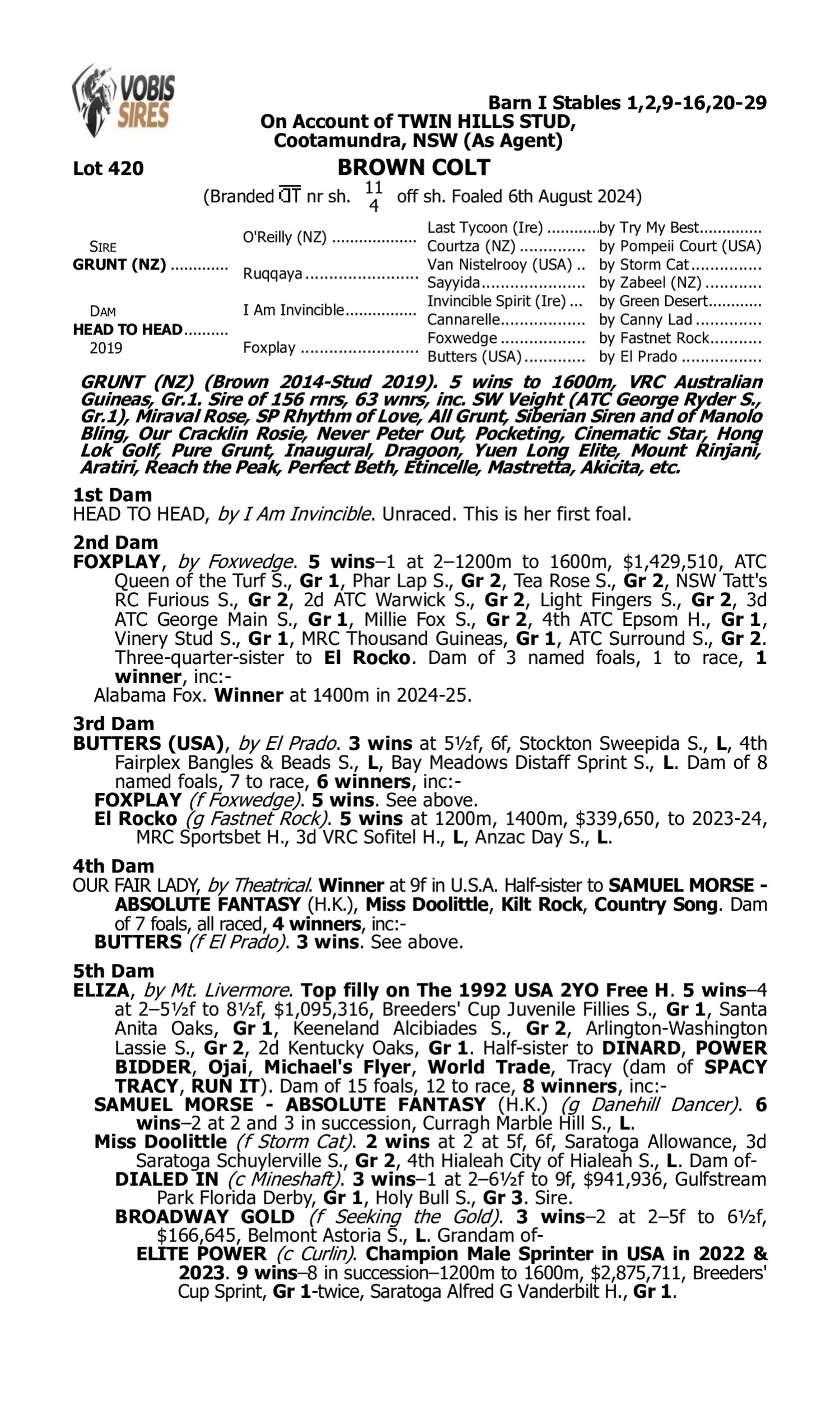 Pedigree for Lot 419 Jacquinot - Head on Up