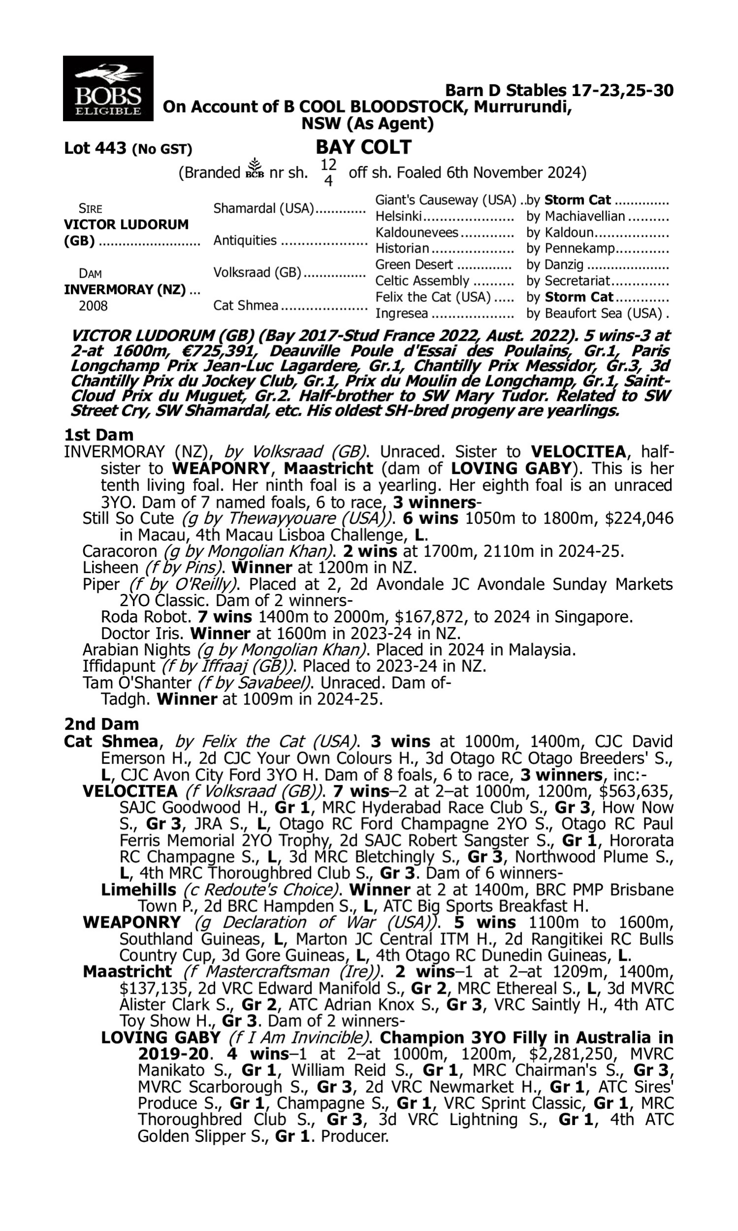 2nd Dam North Pole (2022.g. by Farnan-Global Dream, by Fastnet Rock-Valadon). 2025-04-30 1st Ipswich TC (Ipswich) Great Northern Maiden 2YO P. 3rd Dam COOL ARCHIE (2022.c. by Cool Aza Beel-Aware, by Tale of the Cat-Media). 2025-05-31 1st BRC (Eagle Farm) Sires' Produce S. Gr.2 2025-05-17 1st BRC (Doomben) Spirit of Boom Classic Gr.2 2025-05-03 1st BRC (Eagle Farm) Dalrello S. L 2025-04-16 1st BRC (Doomben) Sky Racing Maiden 2YO P.