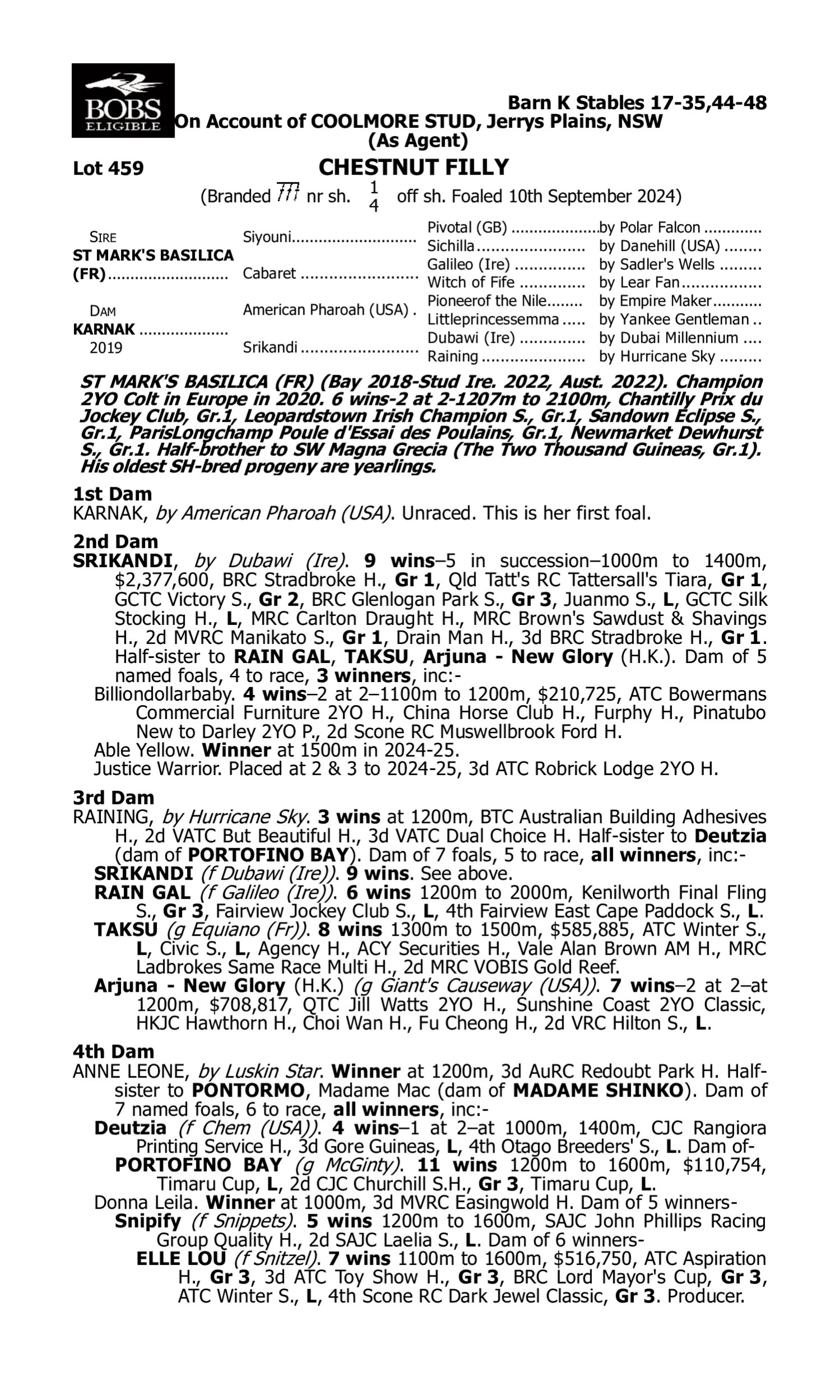 Pedigree for Lot 458 Stay Inside - Kalkarni Royale