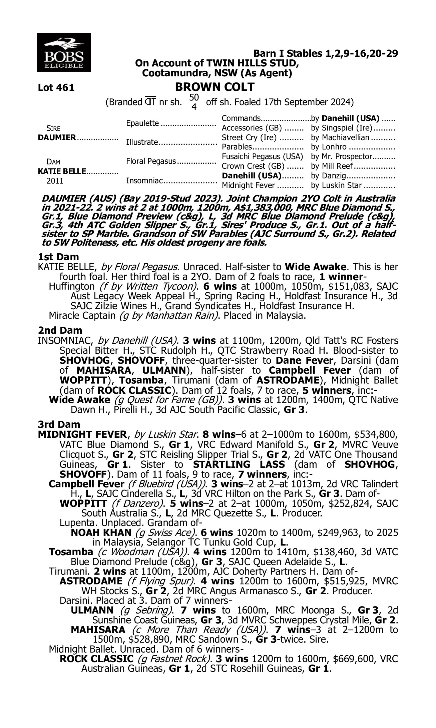 Pedigree for Lot 460 Savabeel - Kate Velour (NZ)