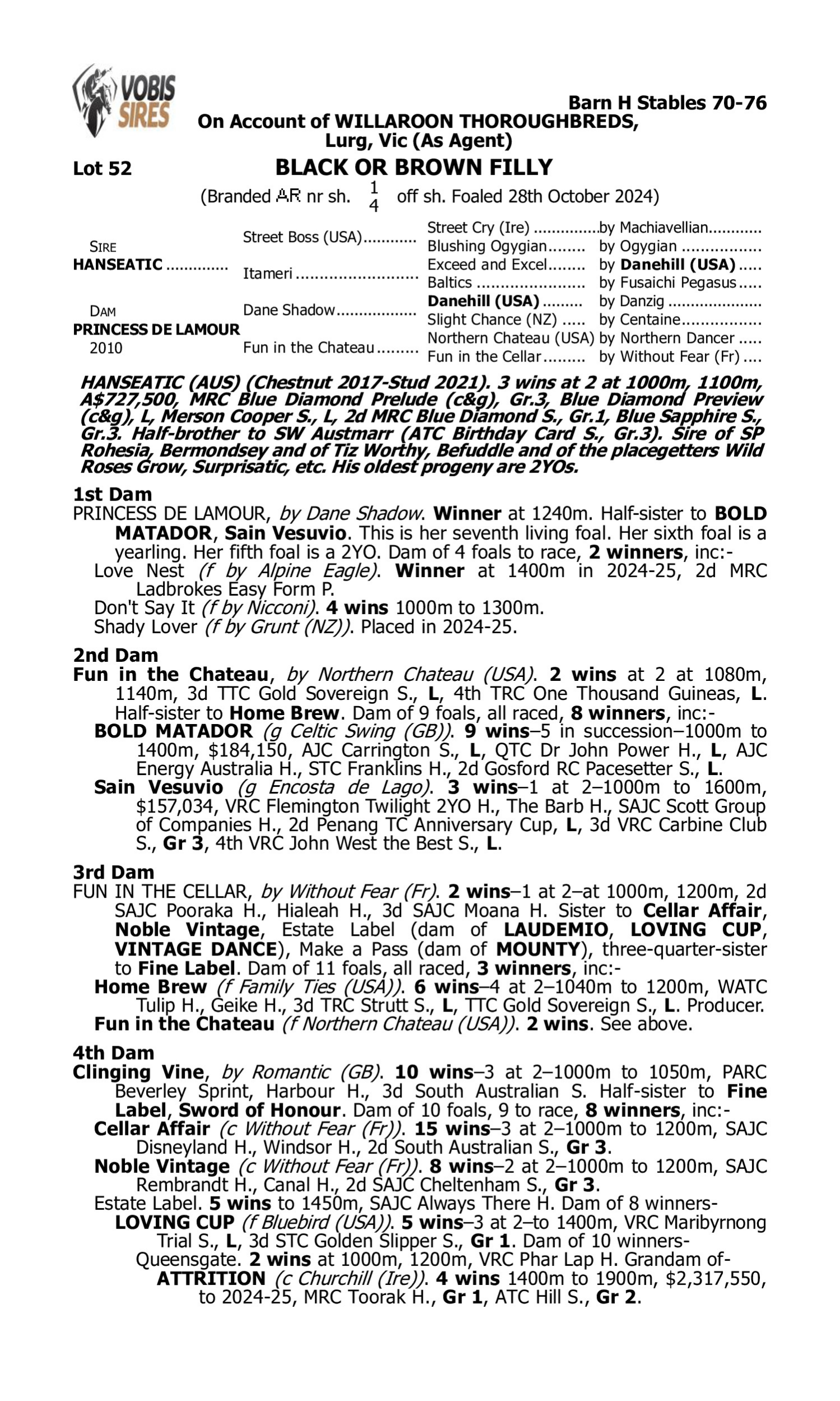 Lot 51 has pedigree updates since the release of the catalogue.