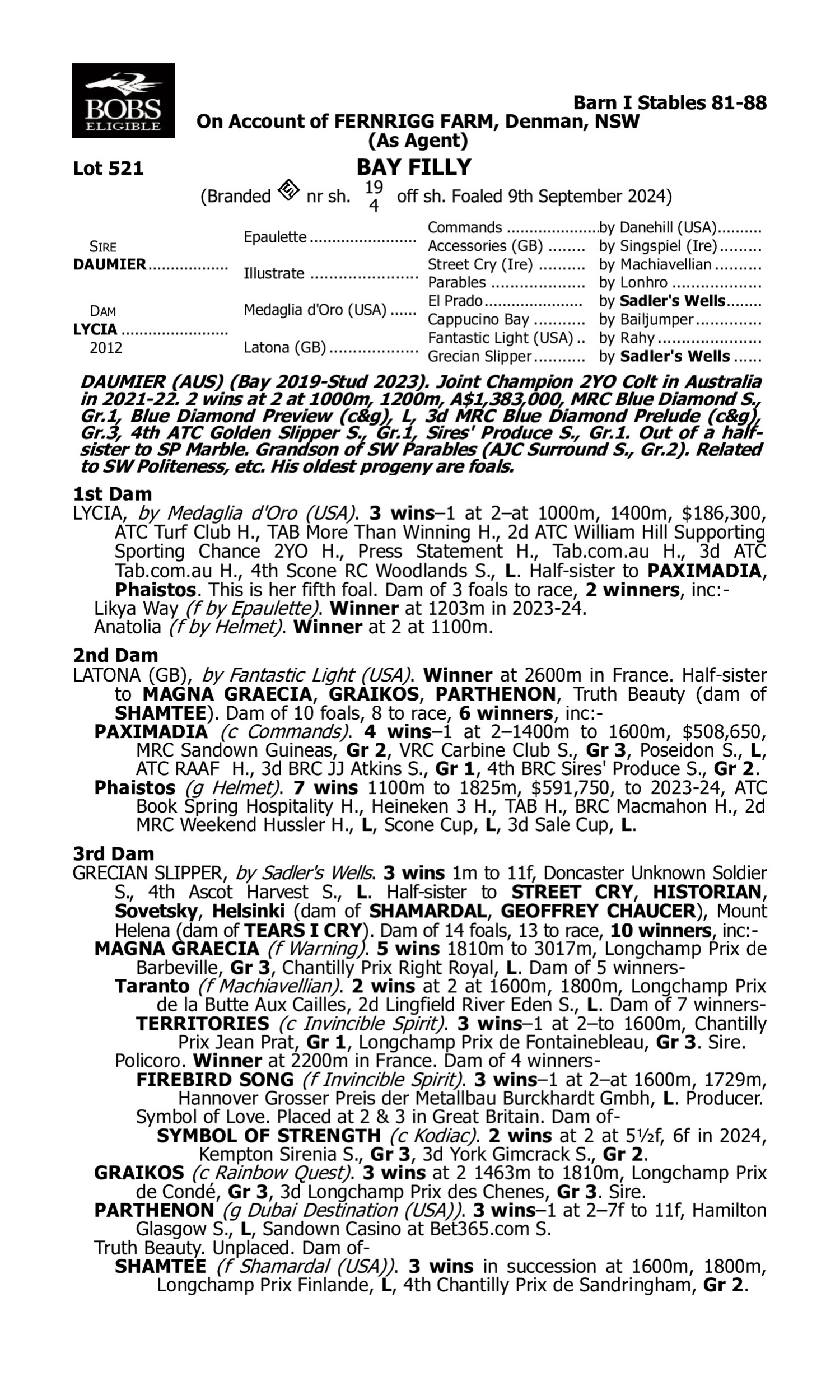 Lot 520 has pedigree updates since the release of the catalogue.