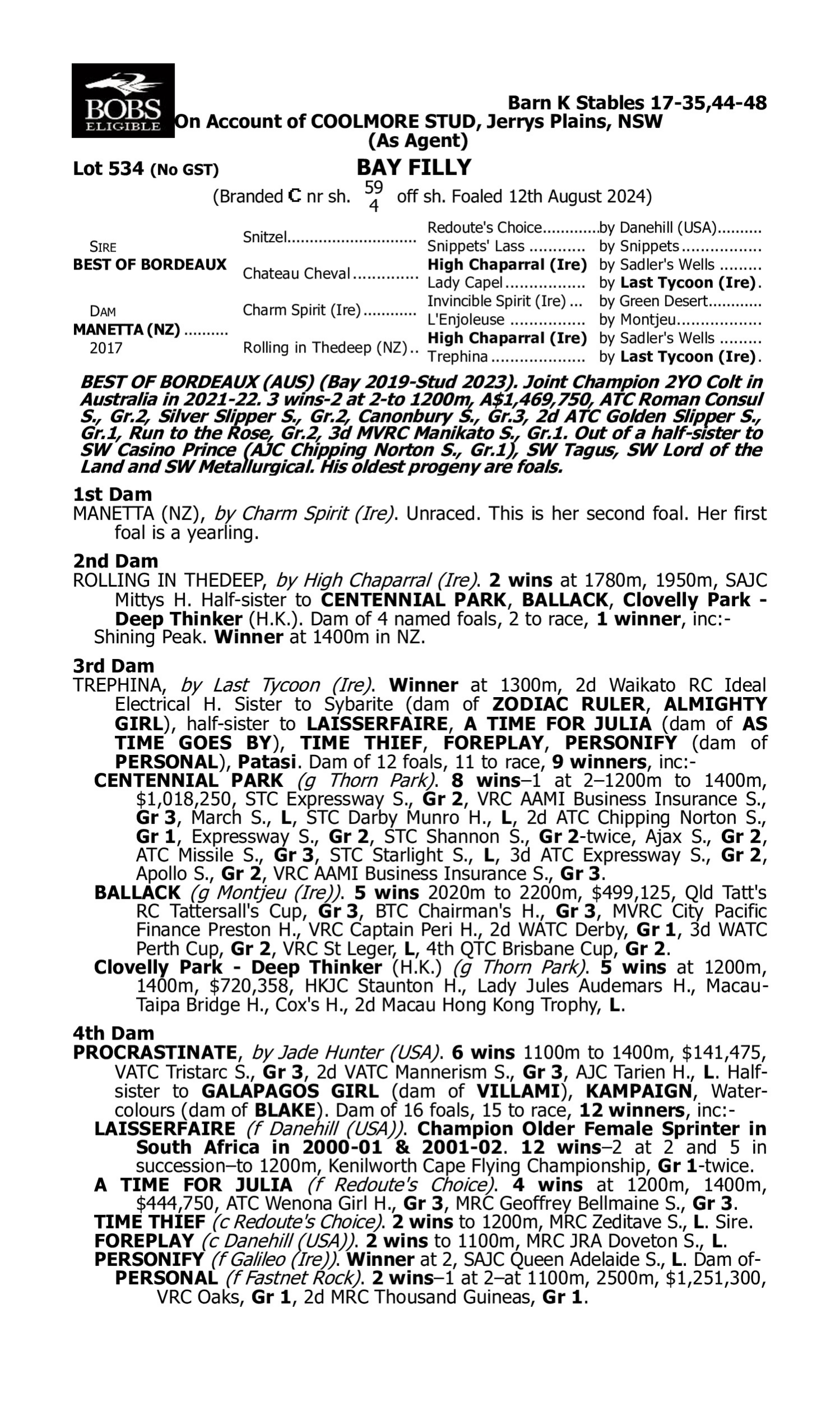Pedigree for Lot 533 Home Affairs - Mandylion