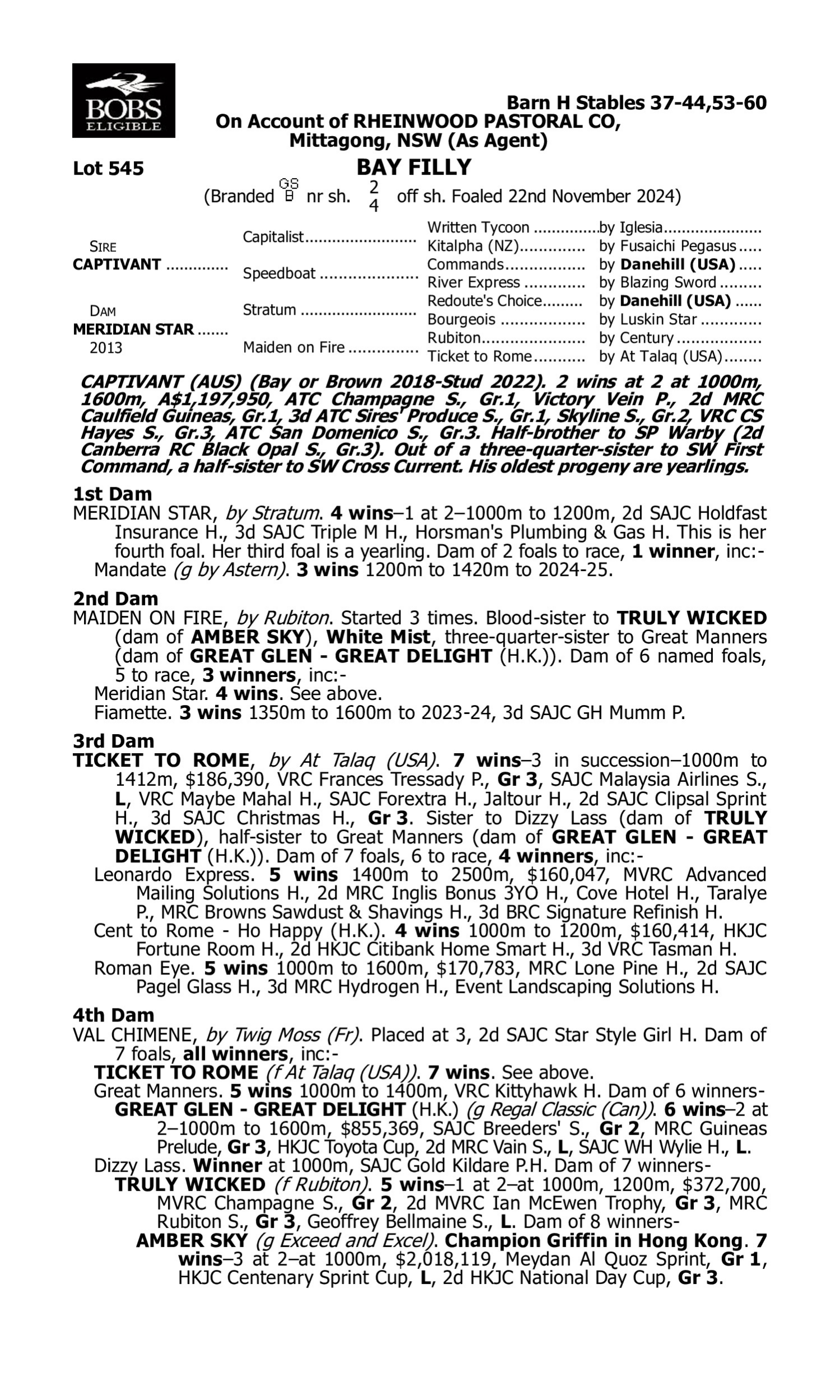 Pedigree for Lot 544 Hellbent - Melisende