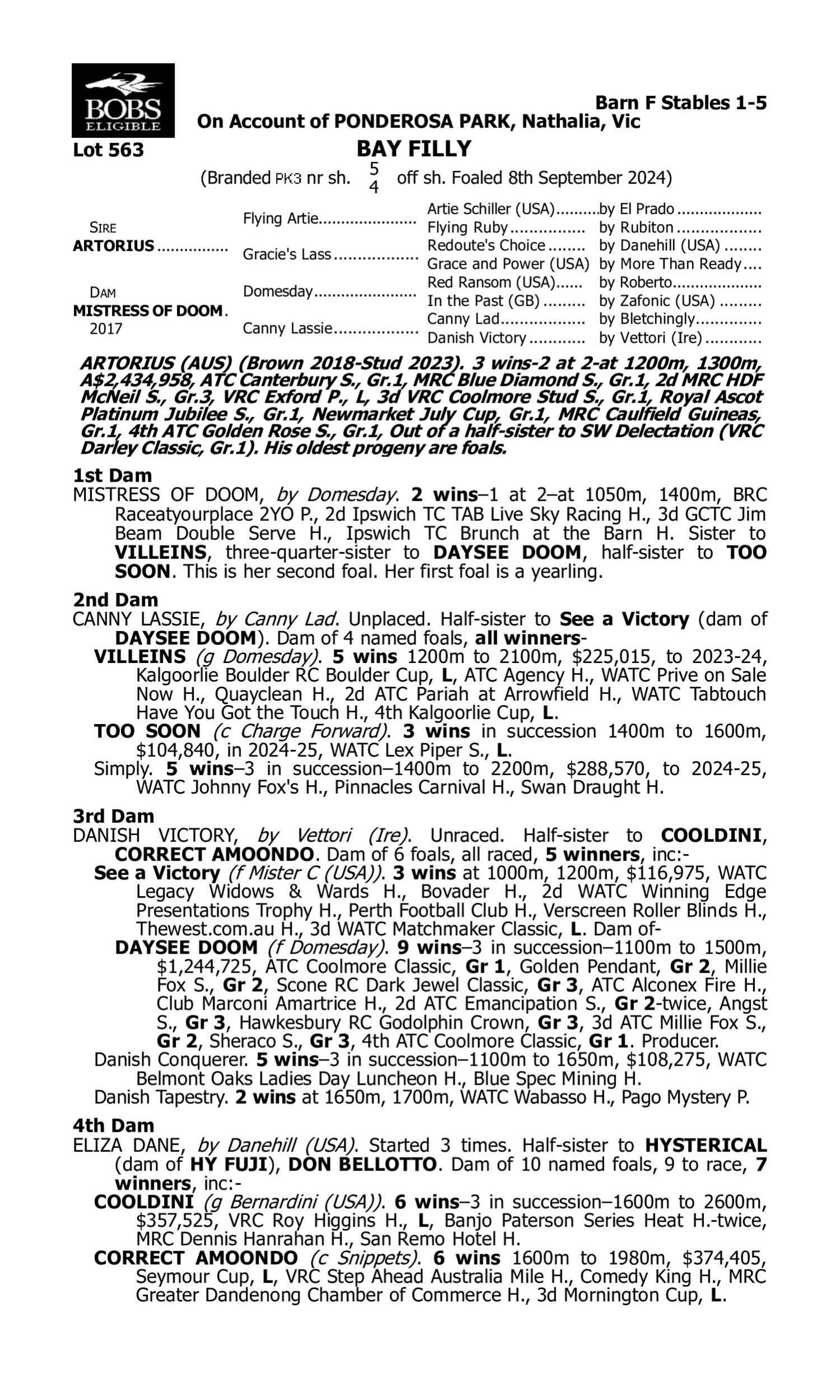 Pedigree for Lot 562 Portland Sky - Mistress Harry