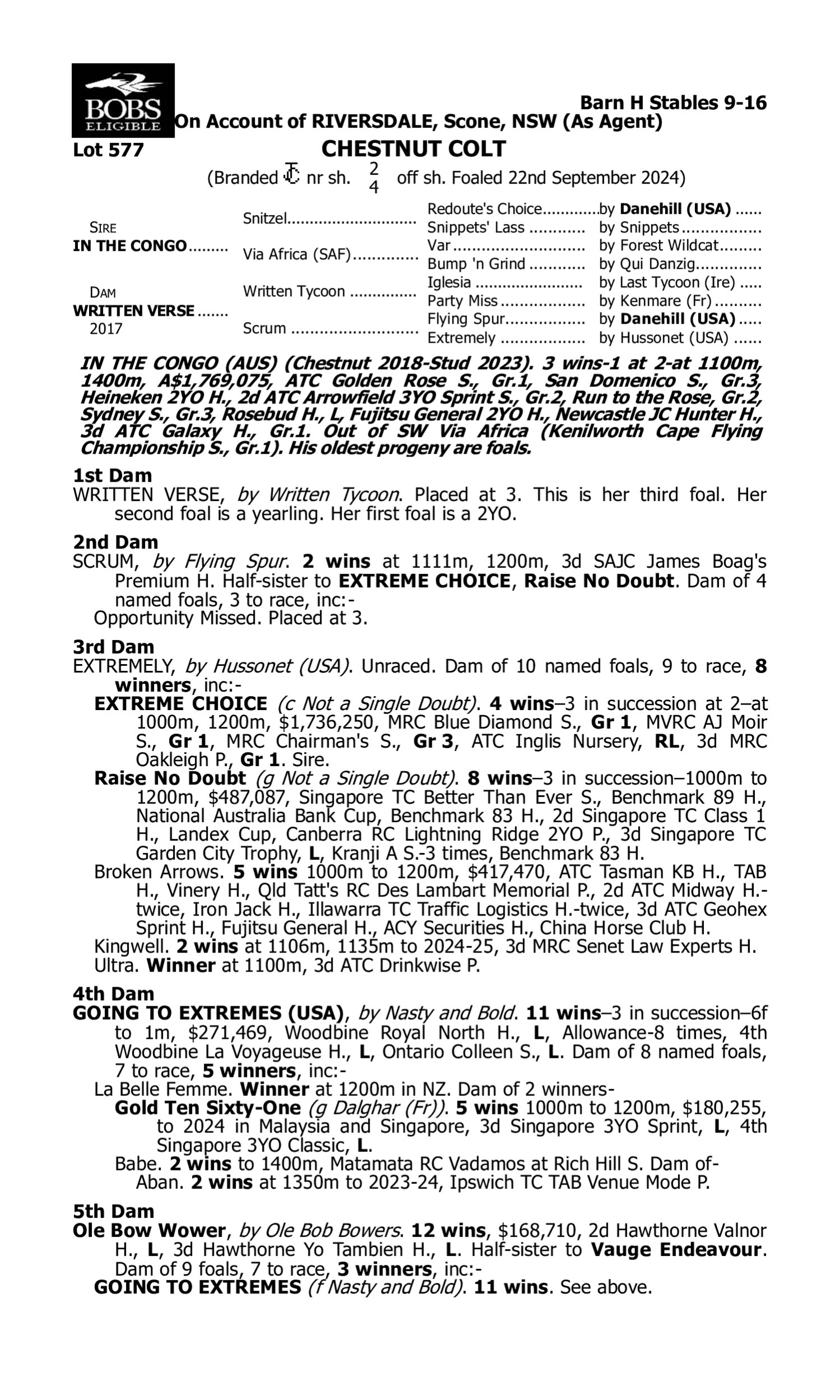 1st Dam Opportunistic (2021.c. by So You Think-I'm Feeling Lucky, by Bletchley Park-Twinkle Toes). 2025-05-28 1st WATC (Pinjarra) Tabtouch Maiden P. 2nd Dam Exceed the Planet (2021.g. by Exceedance-Awesome Planet, by Giant's Causeway-Dance on the Moon). 2025-04-18 1st WATC (Ascot) Tabtouch Maiden P. Funfetti (2020.f. by Embellish-Alternative Fact, by Medaglia d'Oro-Lunar Eclipse). 2025-05-15 1st CJC Firefighters Challenge H. 3rd Dam DIAMOND RAIN (2021.f. by Shamardal-Dancing Rain, by Danehill Dancer-Rain Flower). 2025-05-24 1st Haydock Hedge of Oak S. L