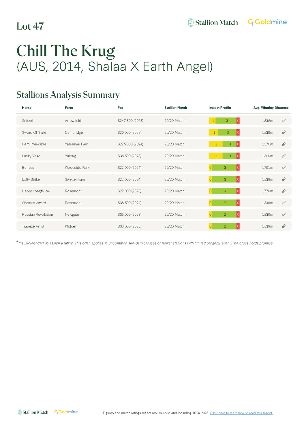 2nd Dam Raikkonen (2021.g. by Shalaa-Tuusula, by Street Cry-Miss Finland). 2025-05-10 1st Gosford RC Railway Hotel H. 2025-06-04 4th BRC (Doomben) Fred Best Classic Gr.3 3rd Dam MAY IT BE (2021.f. by Waldgeist-Pearl of Freedom, by Pivotal-La Pelegrina). 2025-05-20 1st Angers Prix des Angevins