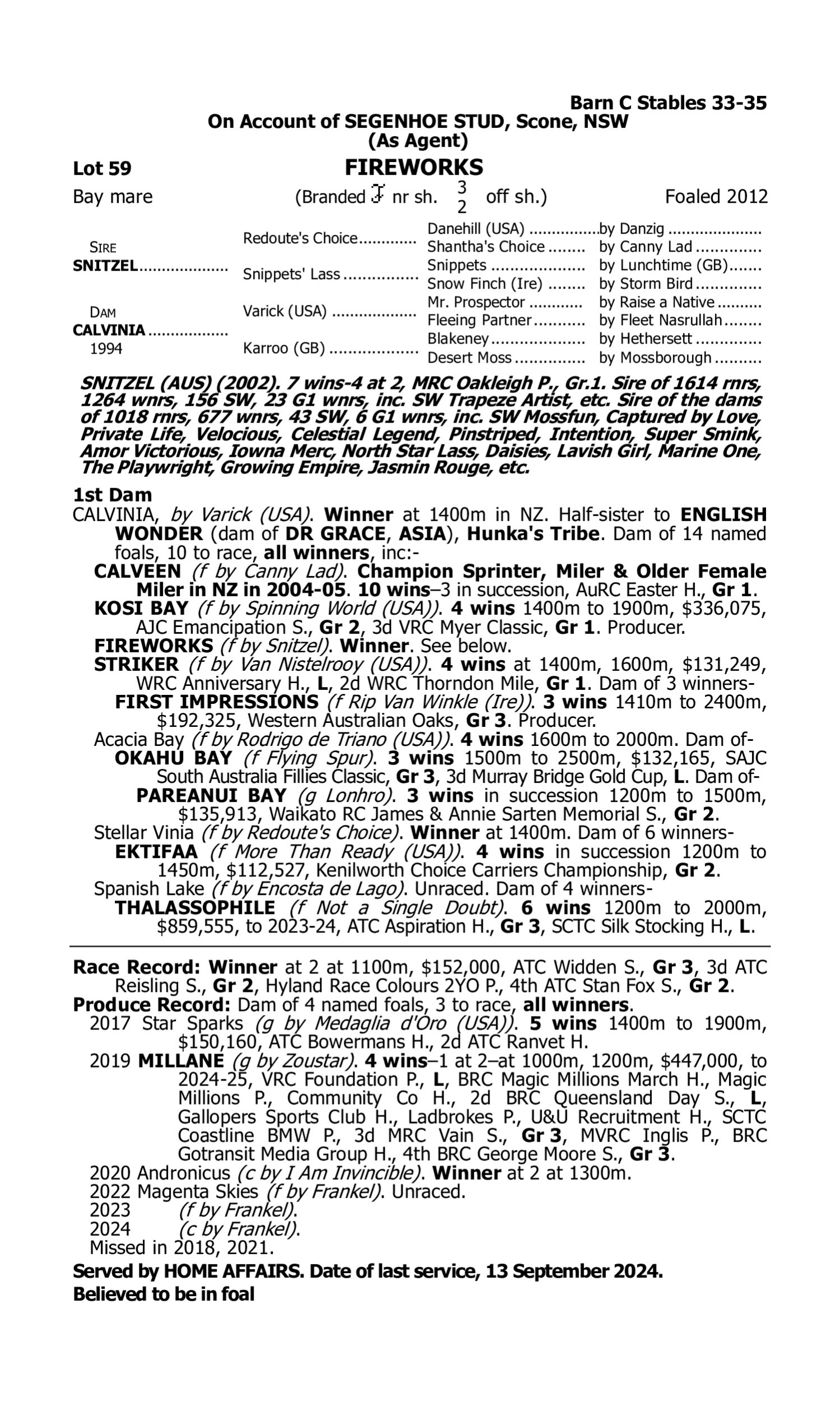 Pedigree for Lot 58 Snitzel - Eleonora (NZ)